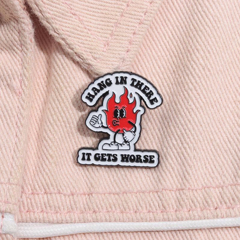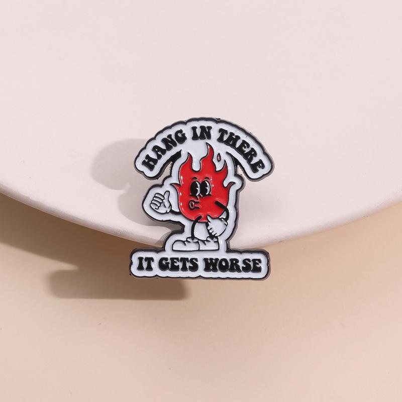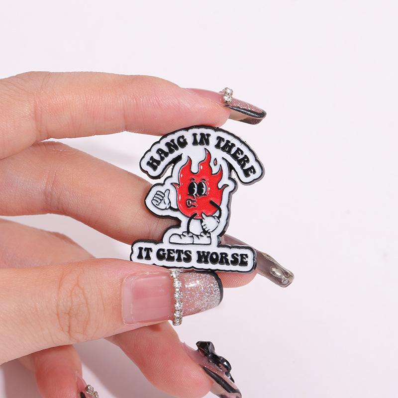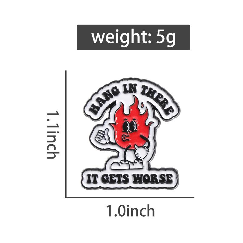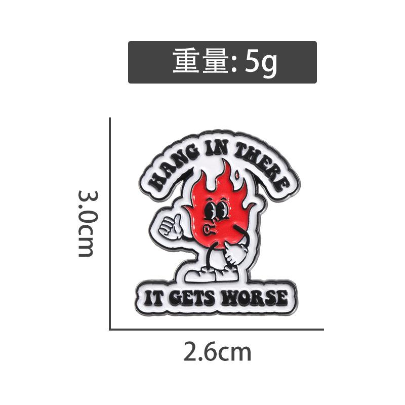 Broche decorativo con forma de nicho de llama roja de dibujos animados, insignia de metal, accesorios, letra, bolso, ropa