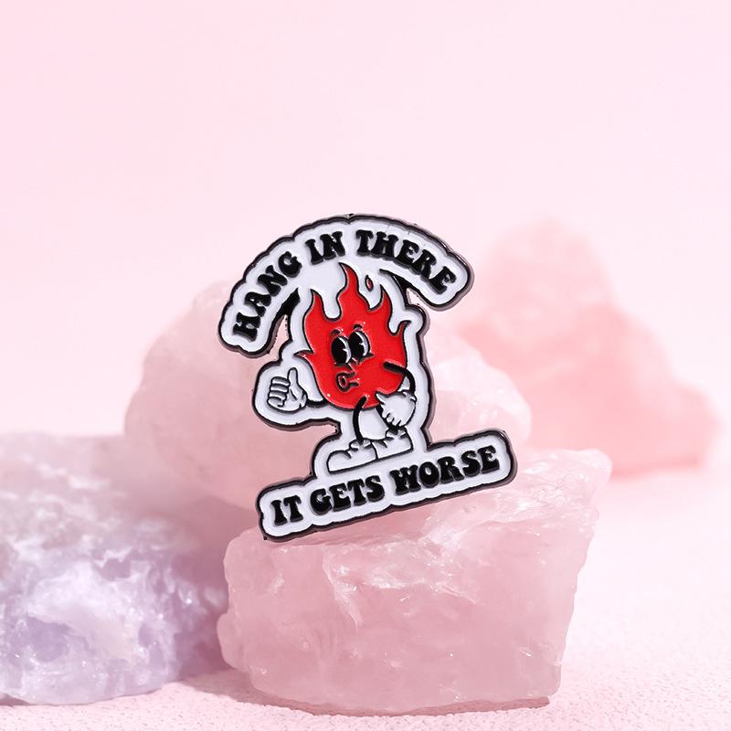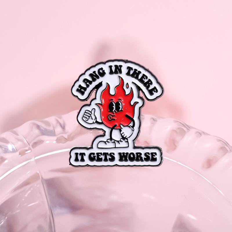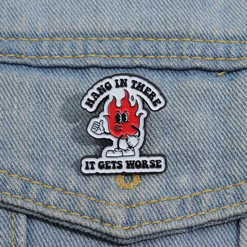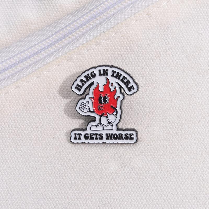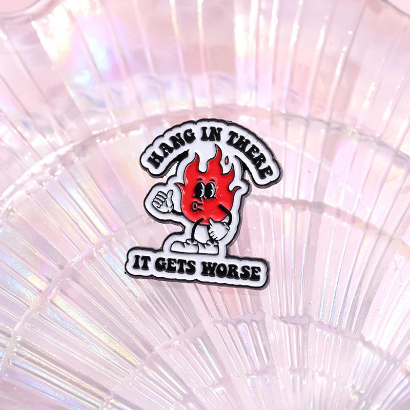 Broche decorativo con forma de nicho de llama roja de dibujos animados, insignia de metal, accesorios, letra, bolso, ropa