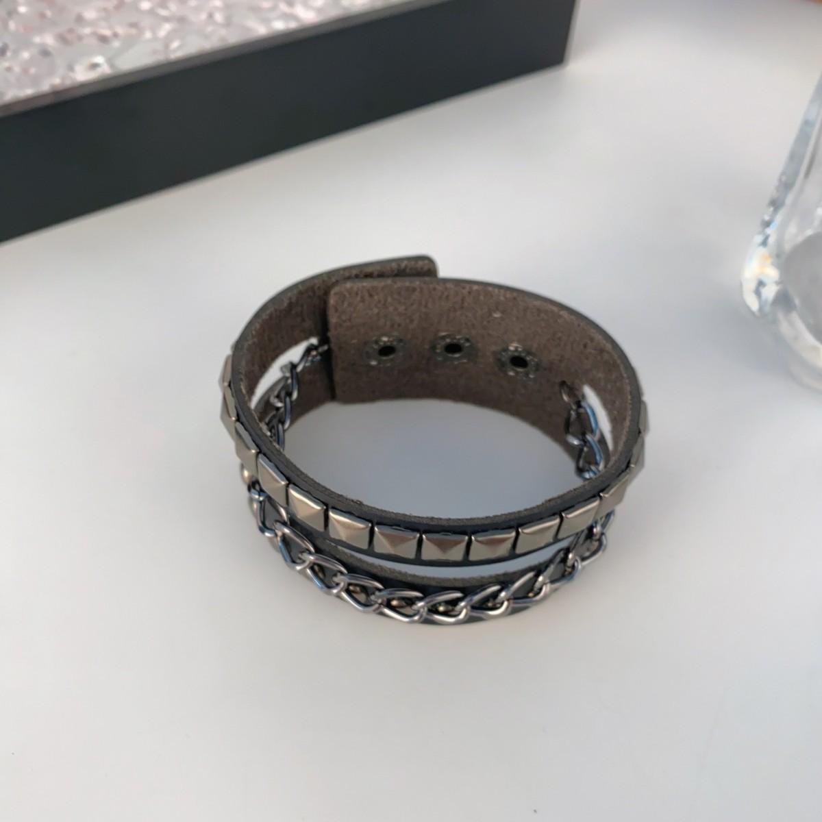 Leather rivet punk bracelet