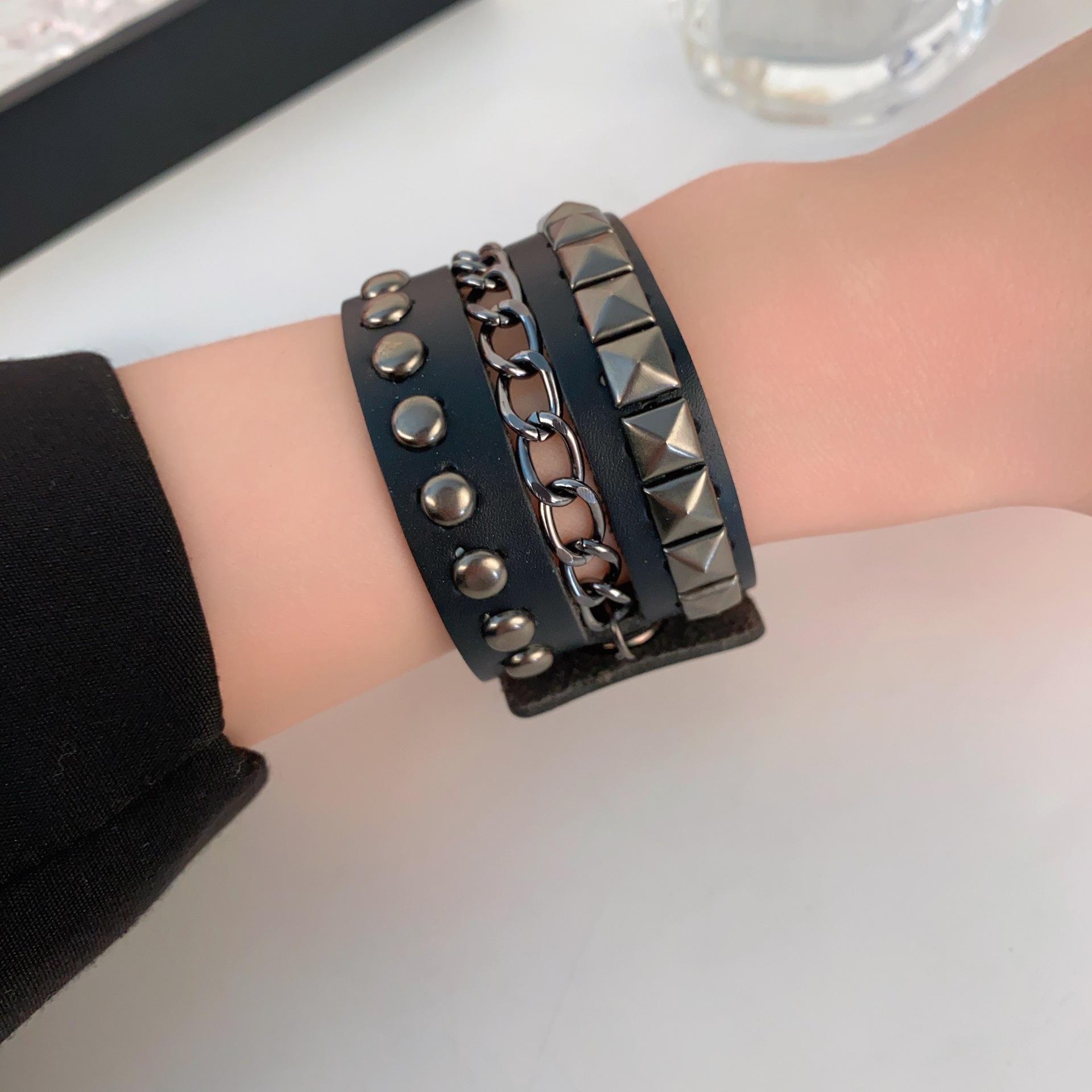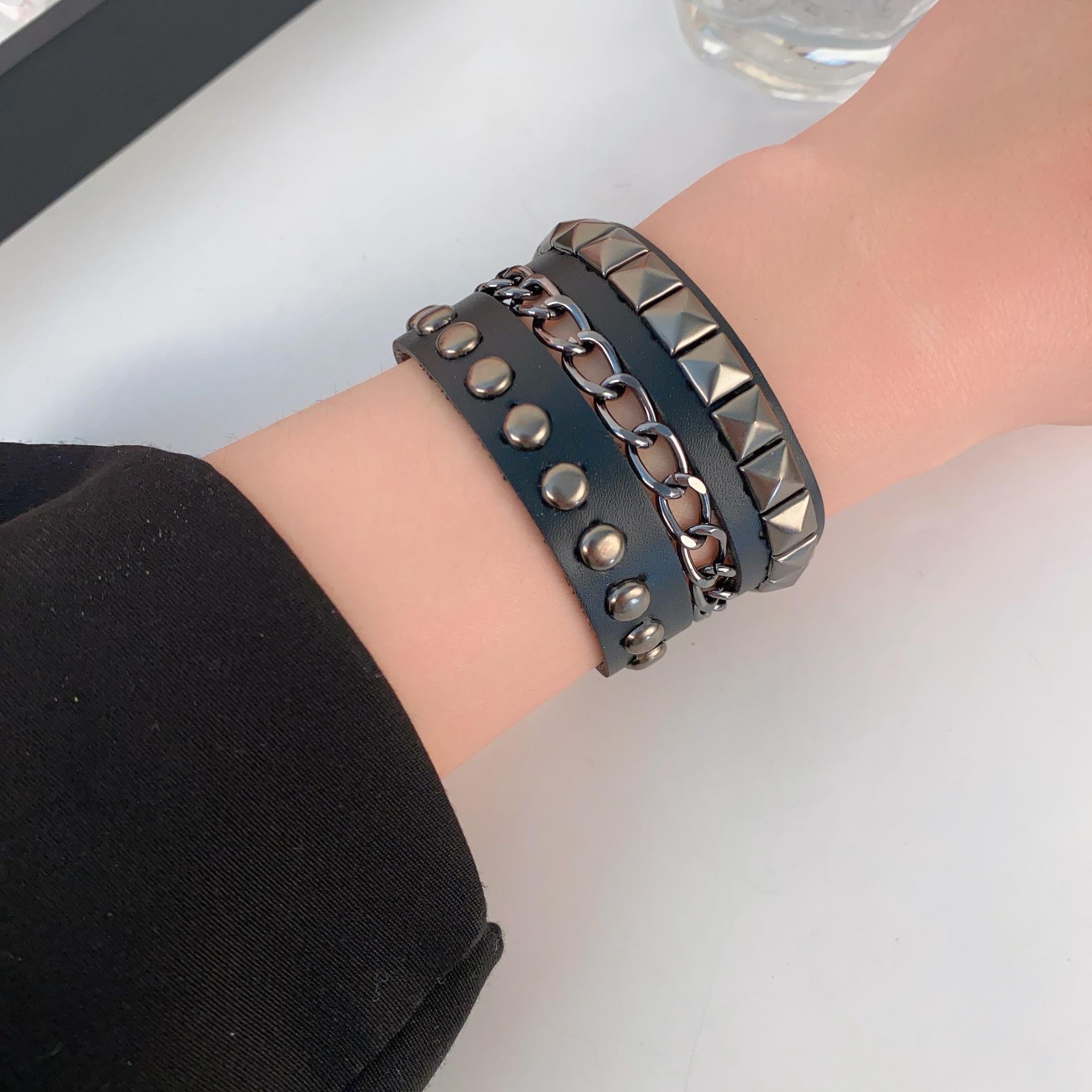 Subcultura Punk Remache Pulsera de Cuero Estilo Oscuro Diseño Nicho Spice Girls Todo Combinable PU Pulsera de Muñeca Trendy Accesorios de Pulsera