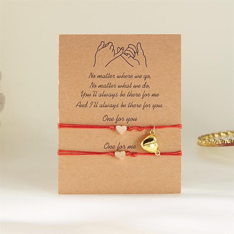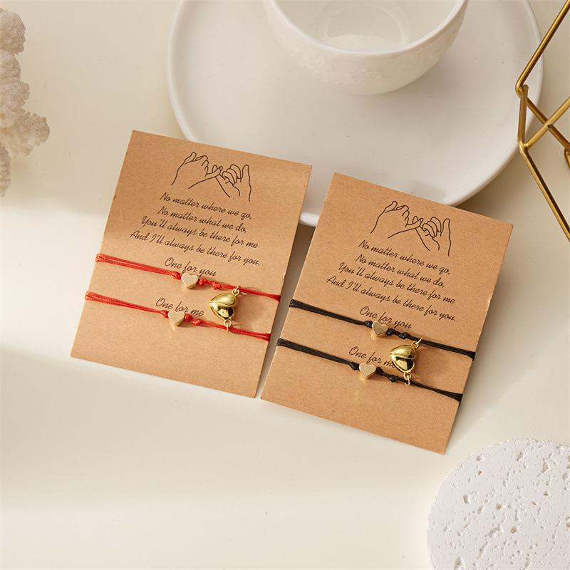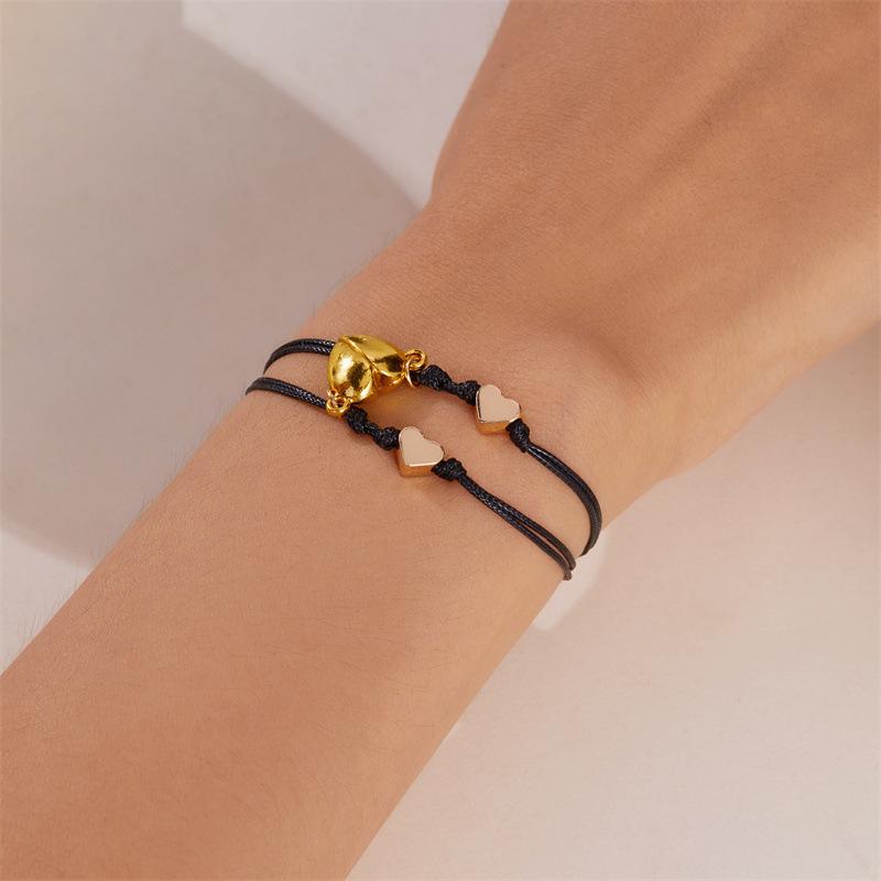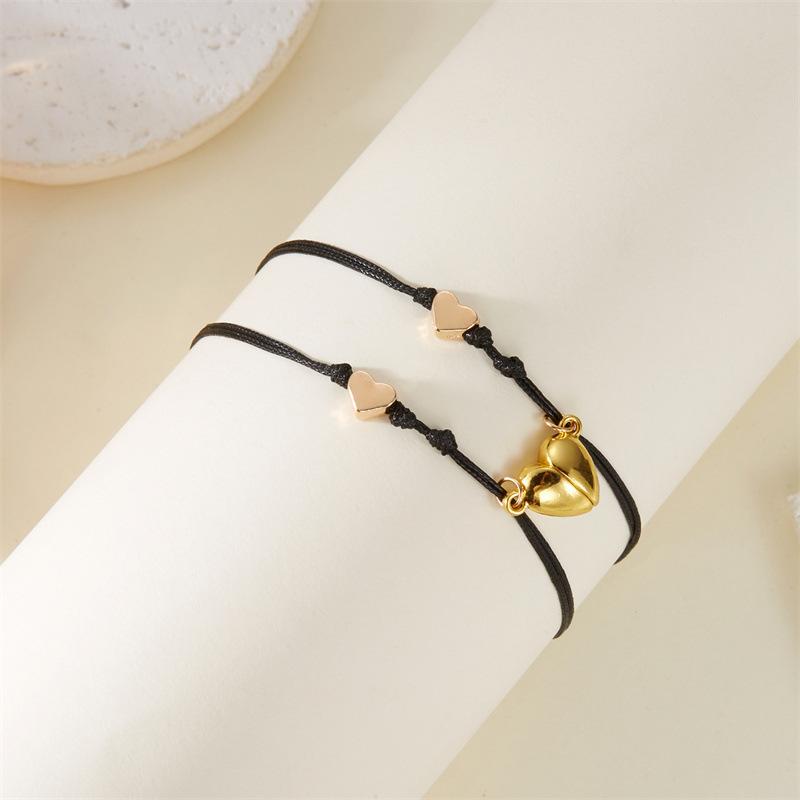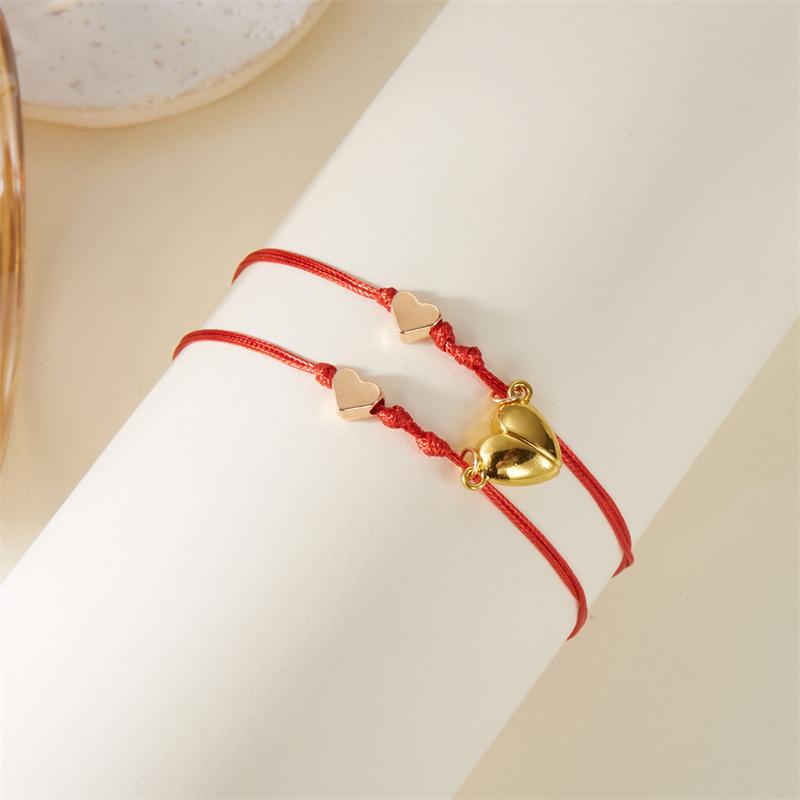 Pulsera Transfronteriza Nueva Tejida a Mano Simple Corazón Dos Cargas Amor Succión Tejida Ajustable Pulsera de Pareja
