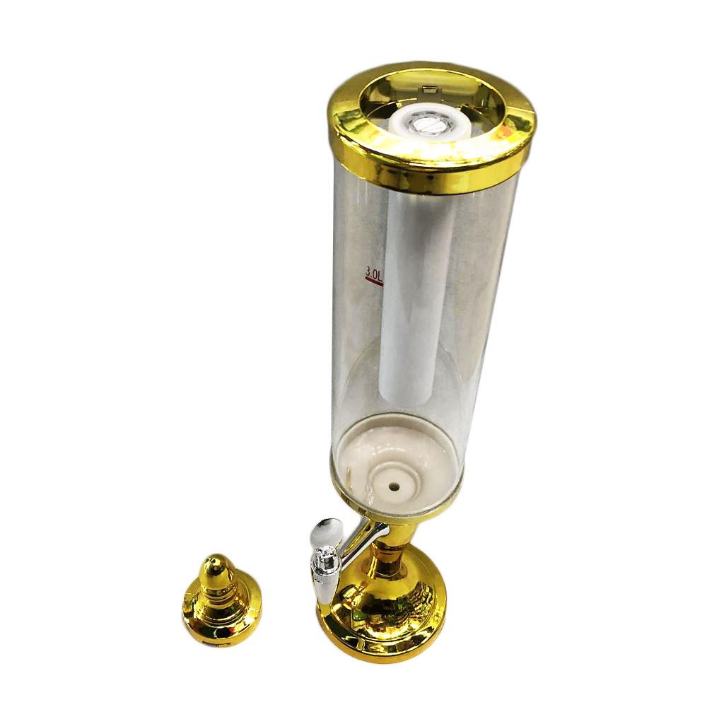 Cañón de vino de estilo europeo chapado en oro y plateado con luces/fiesta de bar con carámbanos 3 litros burbuja de cerveza está hecho de plástico acrílico de alta calidad, base y salida de agua galvanizadas, muy alto, la base está equipada con un dispositivo de lastre, el cuerpo del cañón es transparente y hermoso, el diseño es humanizado, la tapa está bien abrochada y equipada con coloridos carámbanos luminosos, que se pueden congelar directamente en el congelador, práctico y conveniente. Puede realzar la belleza y el estilo del bar, aumentar el placer de beber de las personas y es práctico. Puede mezclar varios vinos extranjeros y observar el color del vino, la cantidad de vino, realzar la belleza del ambiente del bar, aumentar el consumo de los clientes, mejorar el nivel del lugar, varios vinos extranjeros y vinos tintos. Es adecuado para varios hoteles, bares, cócteles, bailes, puestos, KTV, reuniones familiares y otros lugares, lo que puede mejorar su efecto de ambiente general y es su máquina de hacer dinero. Puede contener cualquier líquido como vino, agua, té con leche, bebidas, leche, café, zumo de frutas, etc. Es adecuado para bares, bares de ocio, lugares escénicos, teterías, parques, cines, supermercados, parques de atracciones, fiestas, tiendas de té con leche, grandes cadenas de restaurantes y otros lugares.