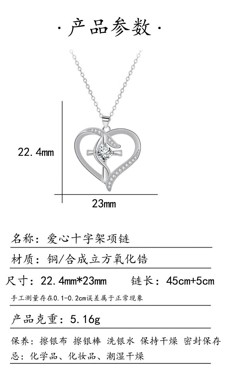 Carman su collar con colgante cruzado en forma de corazón retro elegante de moda europea y americana transfronteriza regalo de San Valentín para mujer