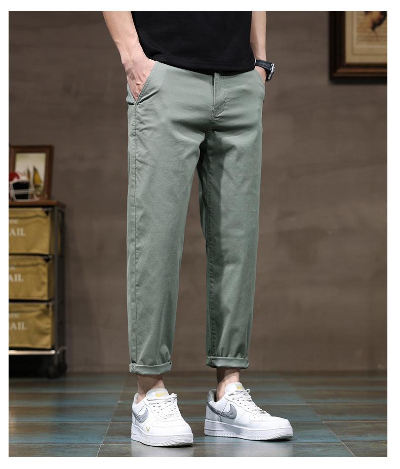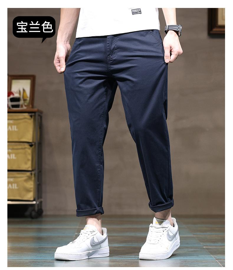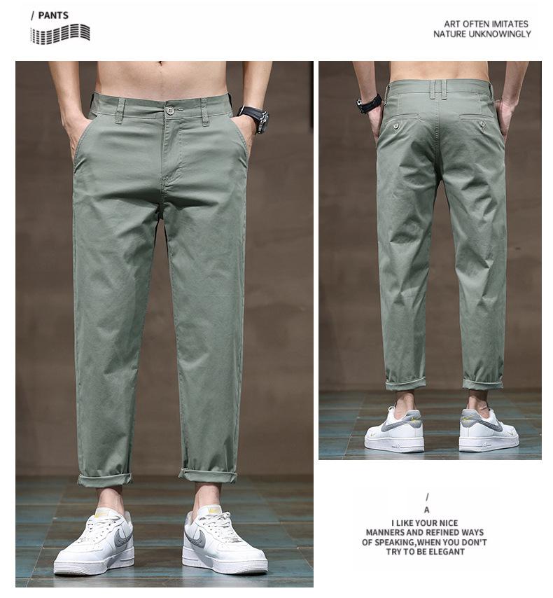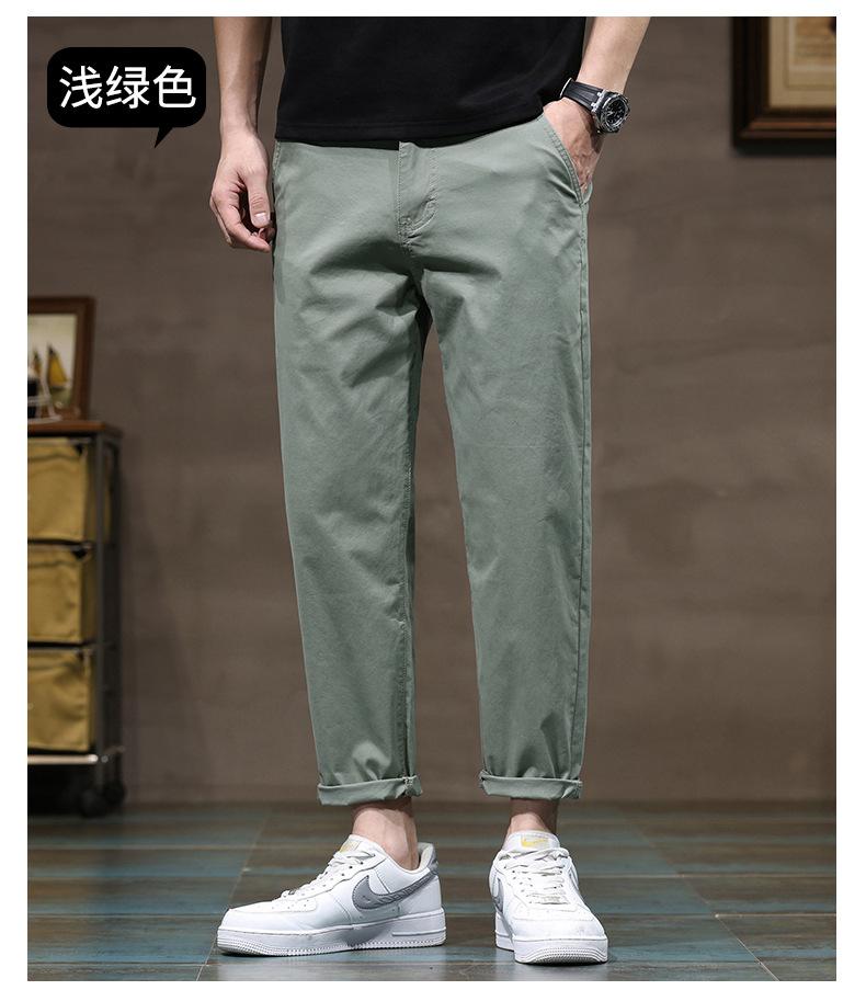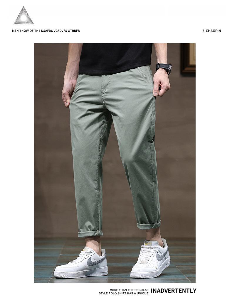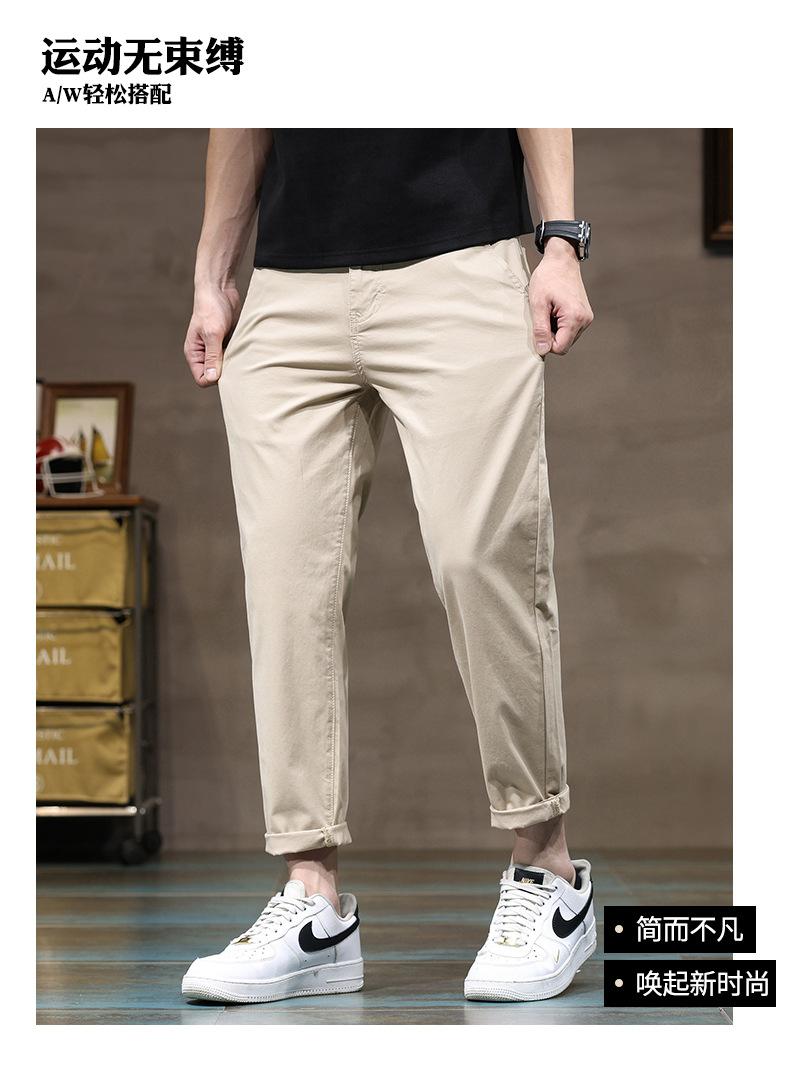 Pantalones casuales de algodón para hombre, primavera y verano, finos, estilo coreano, ajustados, a la moda, sencillos, para negocios, jóvenes, elásticos, de 9 puntos