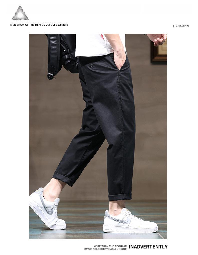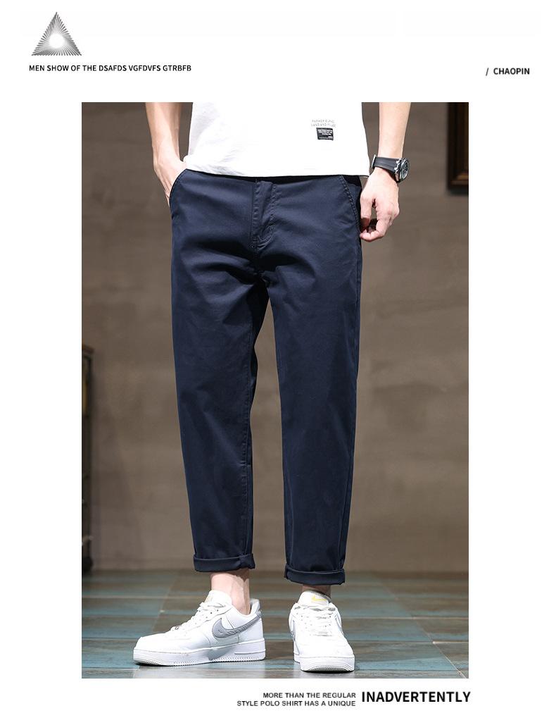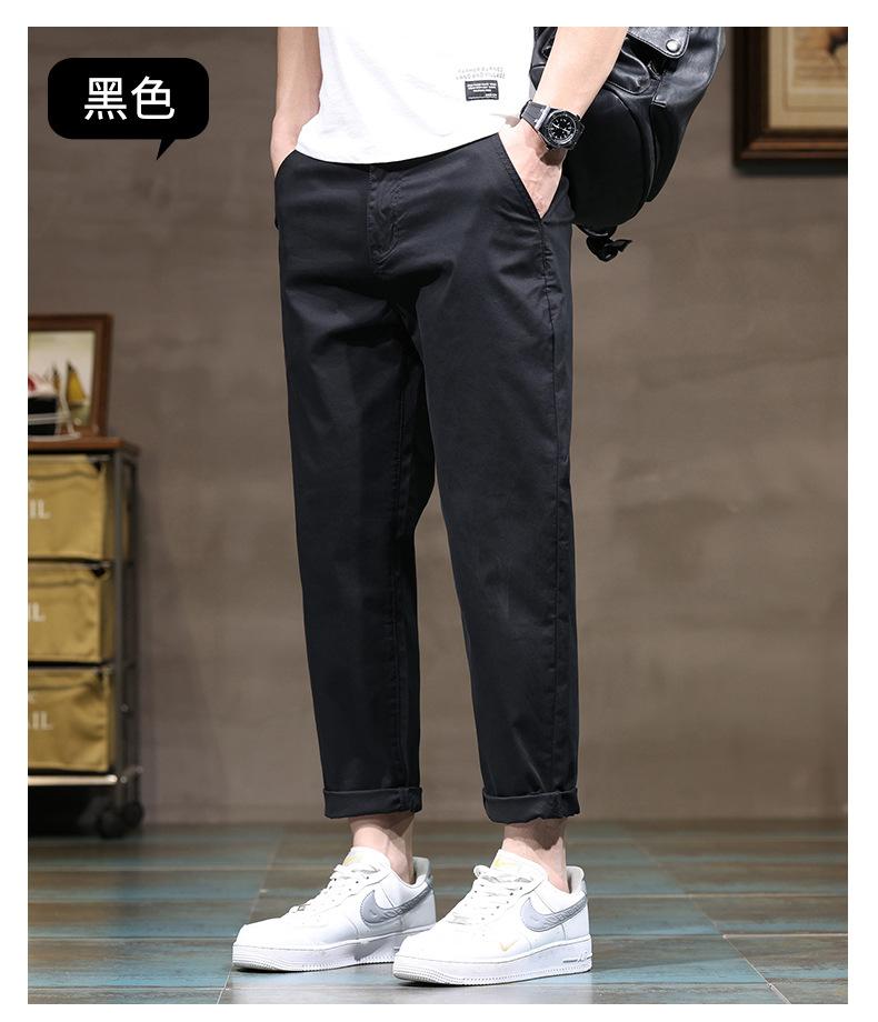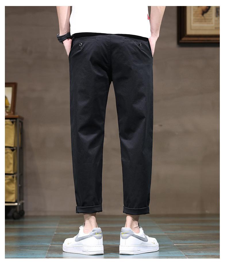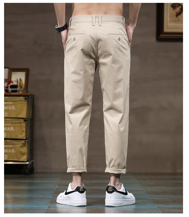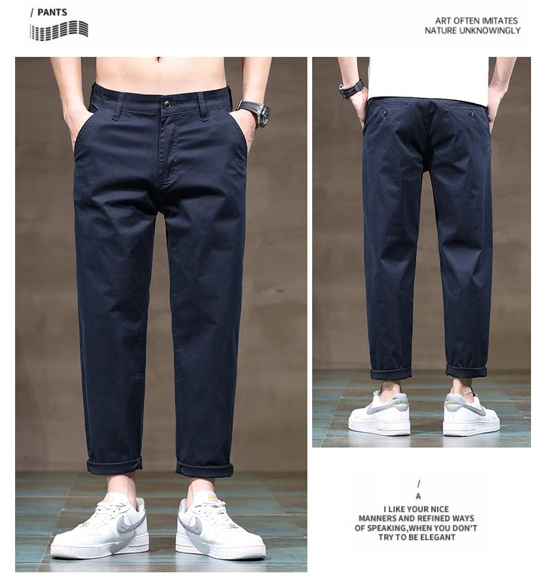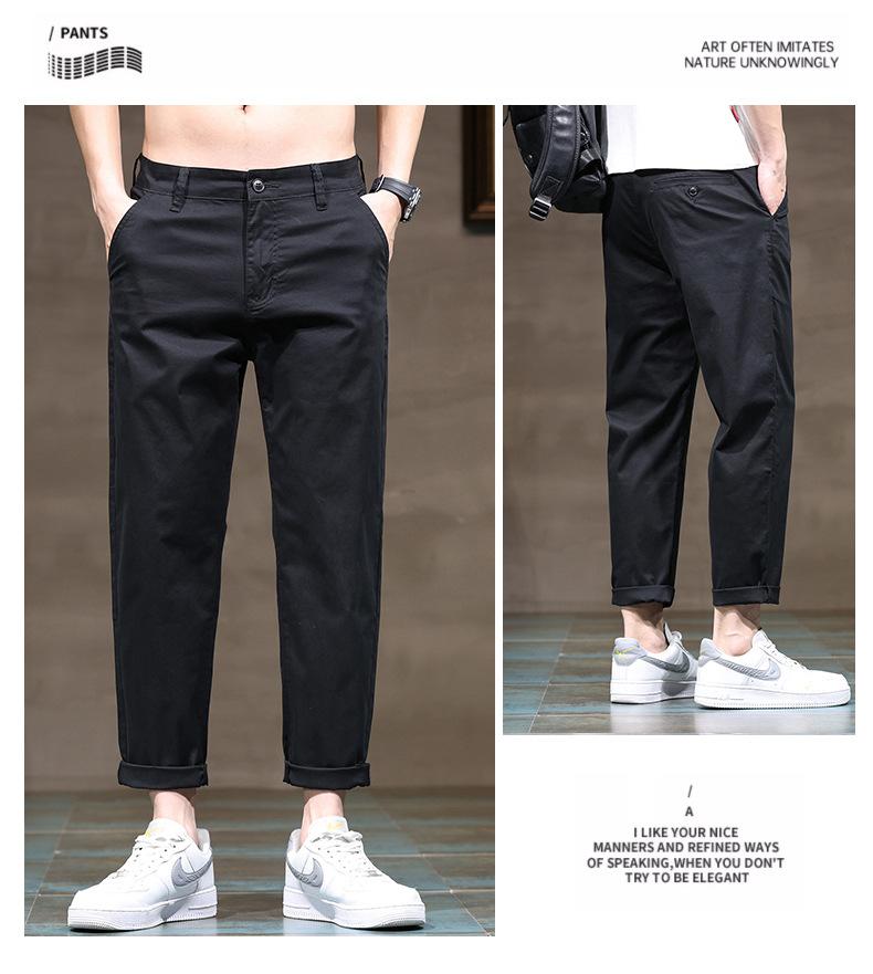 Pantalones casuales de algodón para hombre, primavera y verano, finos, estilo coreano, ajustados, a la moda, sencillos, para negocios, jóvenes, elásticos, de 9 puntos