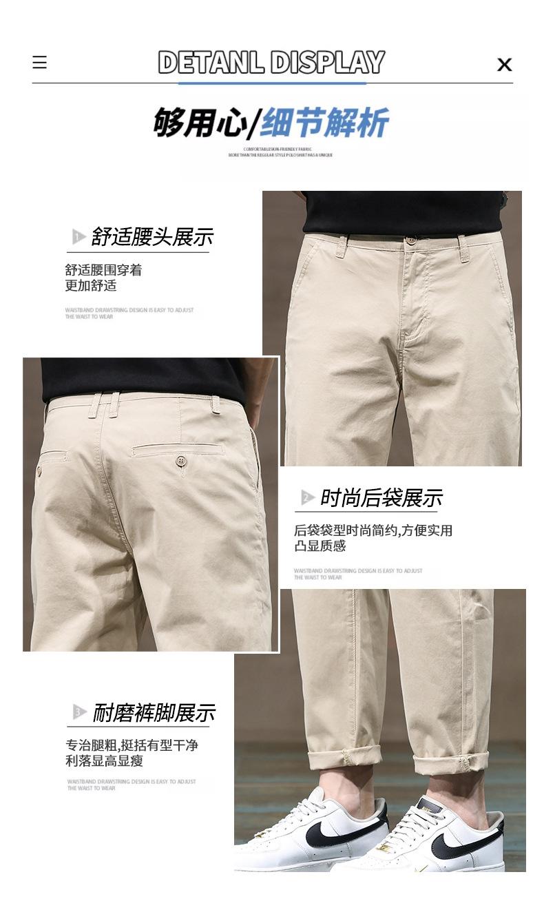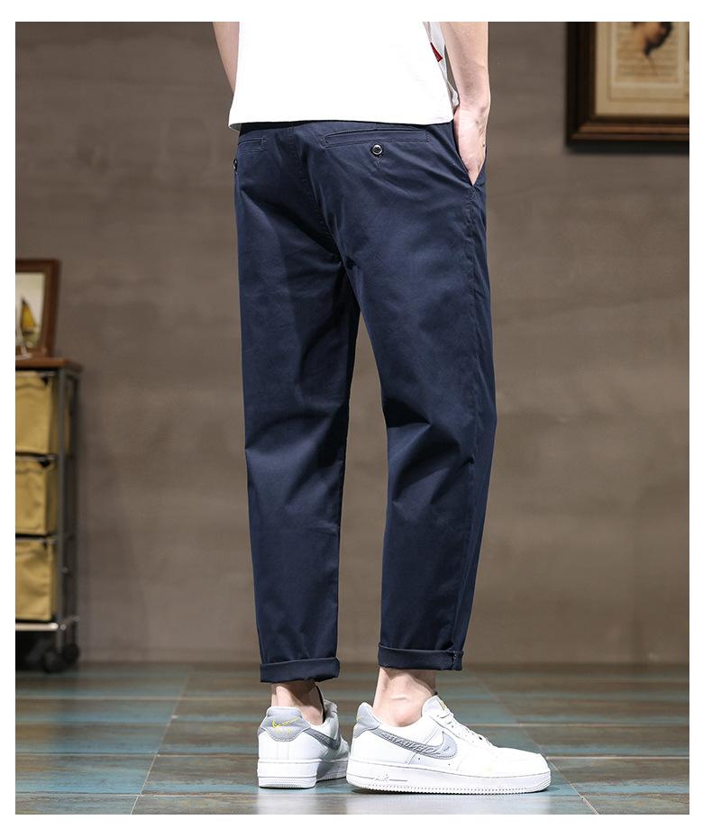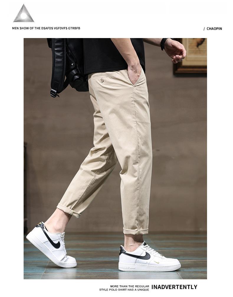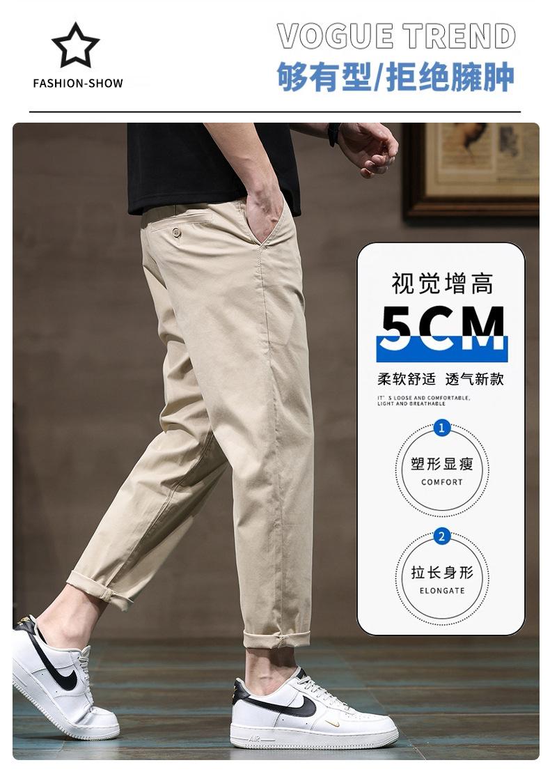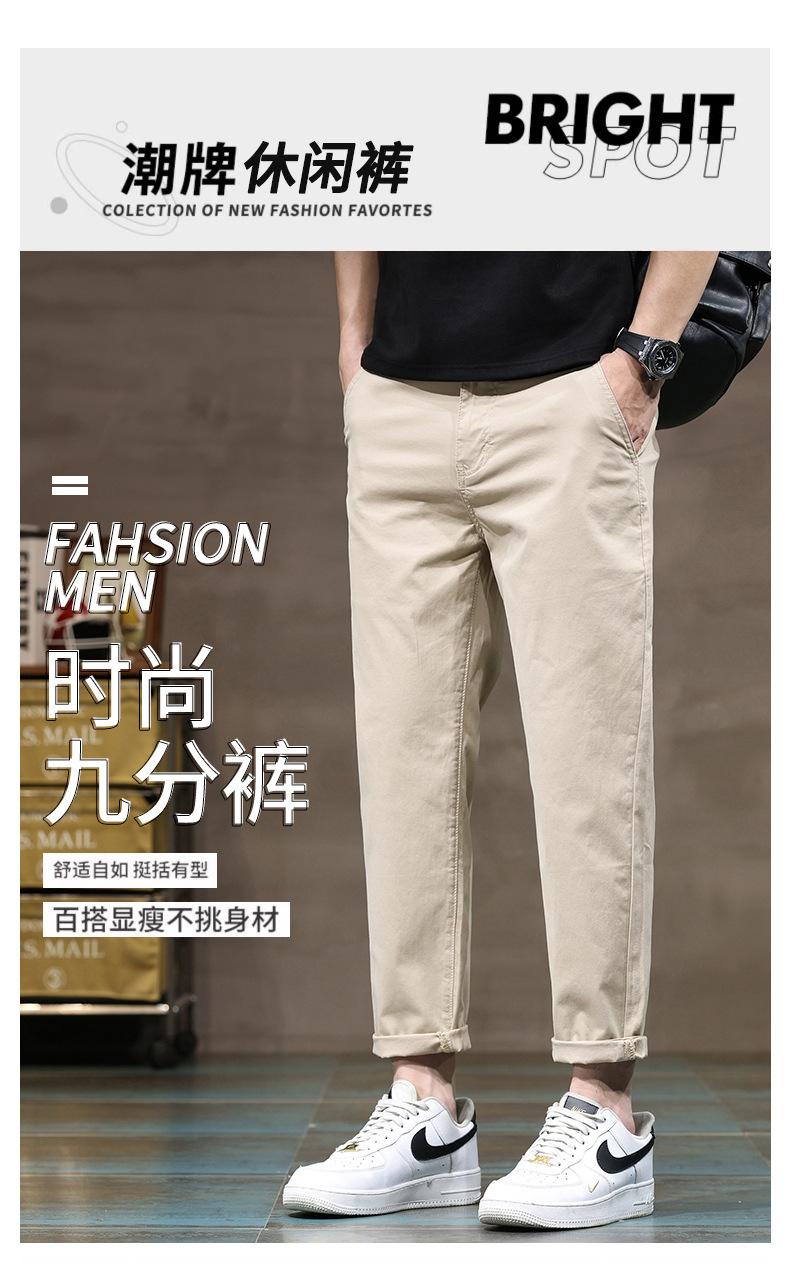 Pantalones casuales de algodón para hombre, primavera y verano, finos, estilo coreano, ajustados, a la moda, sencillos, para negocios, jóvenes, elásticos, de 9 puntos