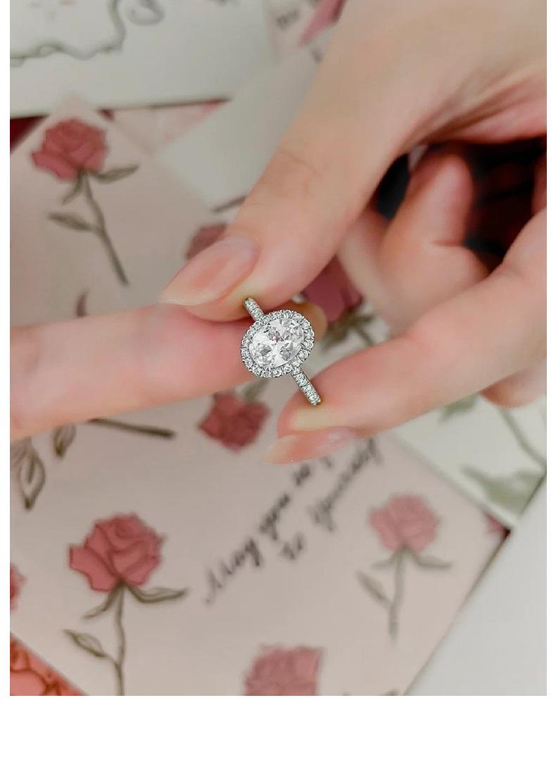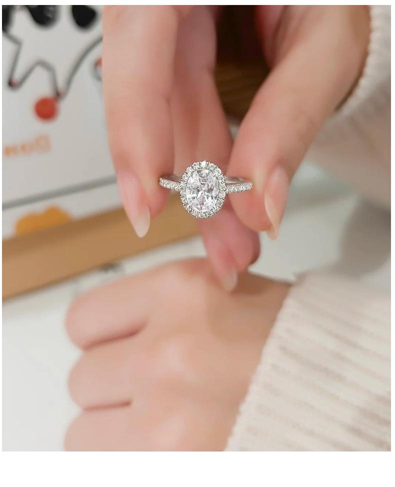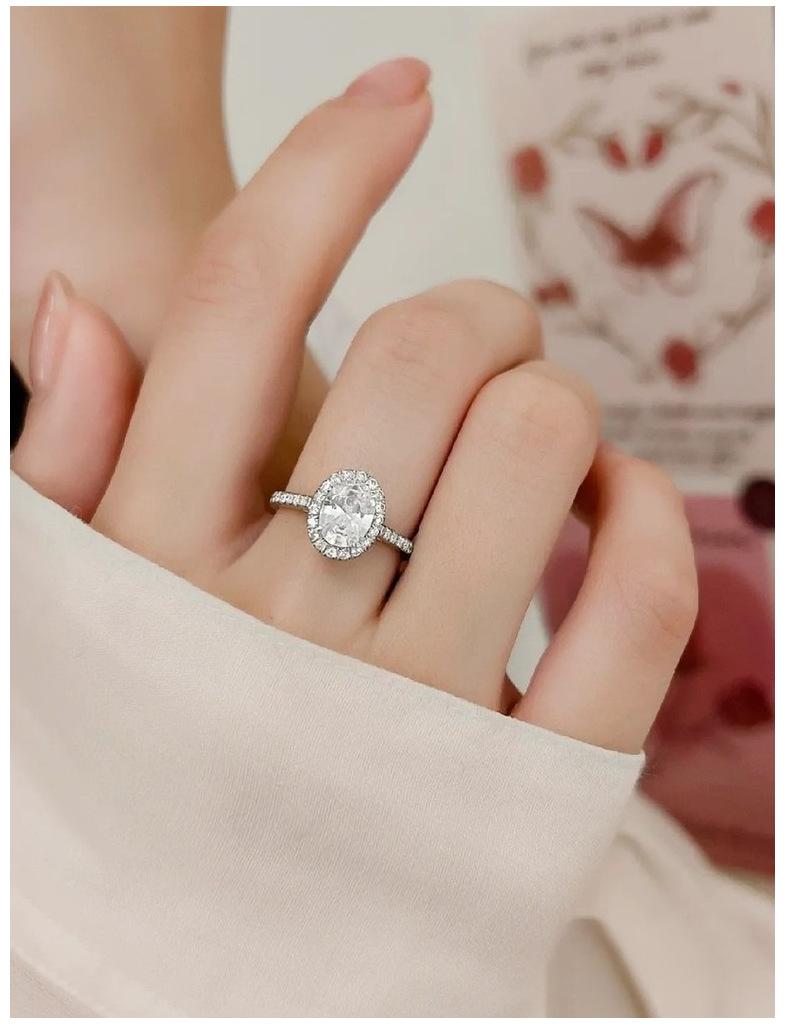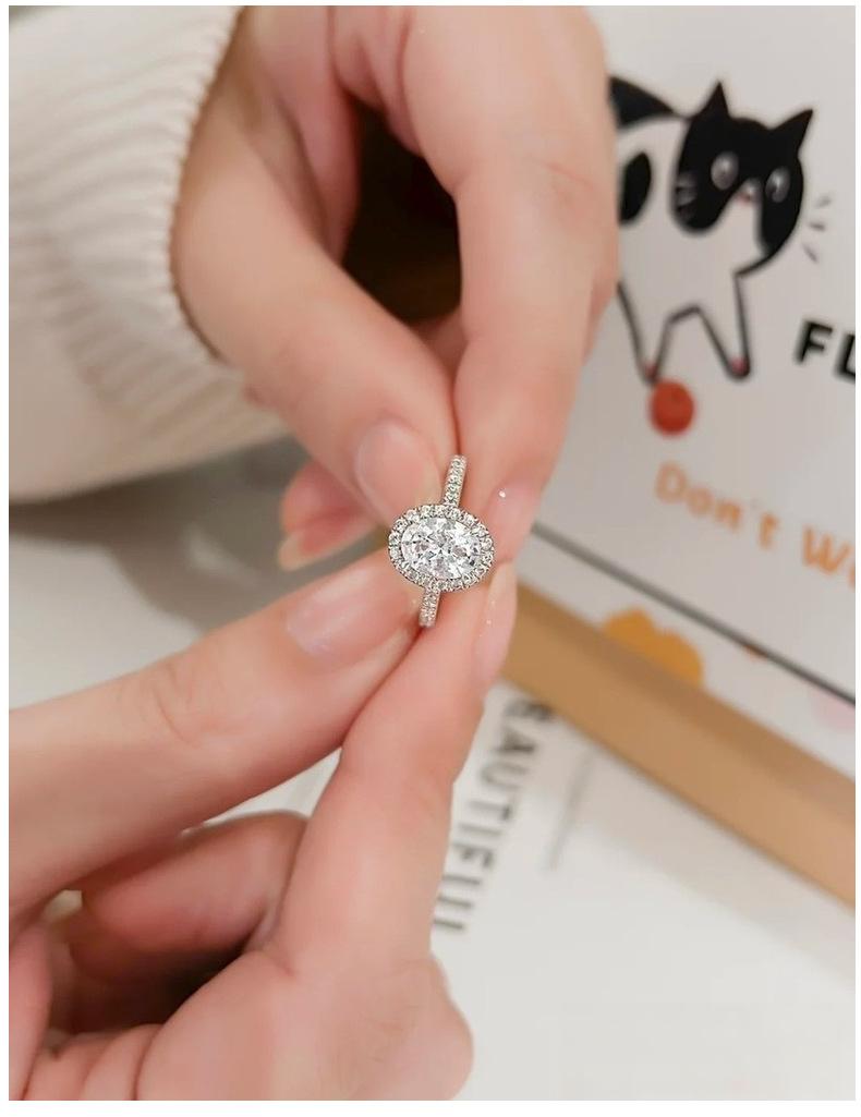 Anillo de moissanita ovalado de 1 quilate con forma de huevo coreano fresco de moda transfronteriza de plata esterlina S925 para mujer, soporte vacío al por mayor