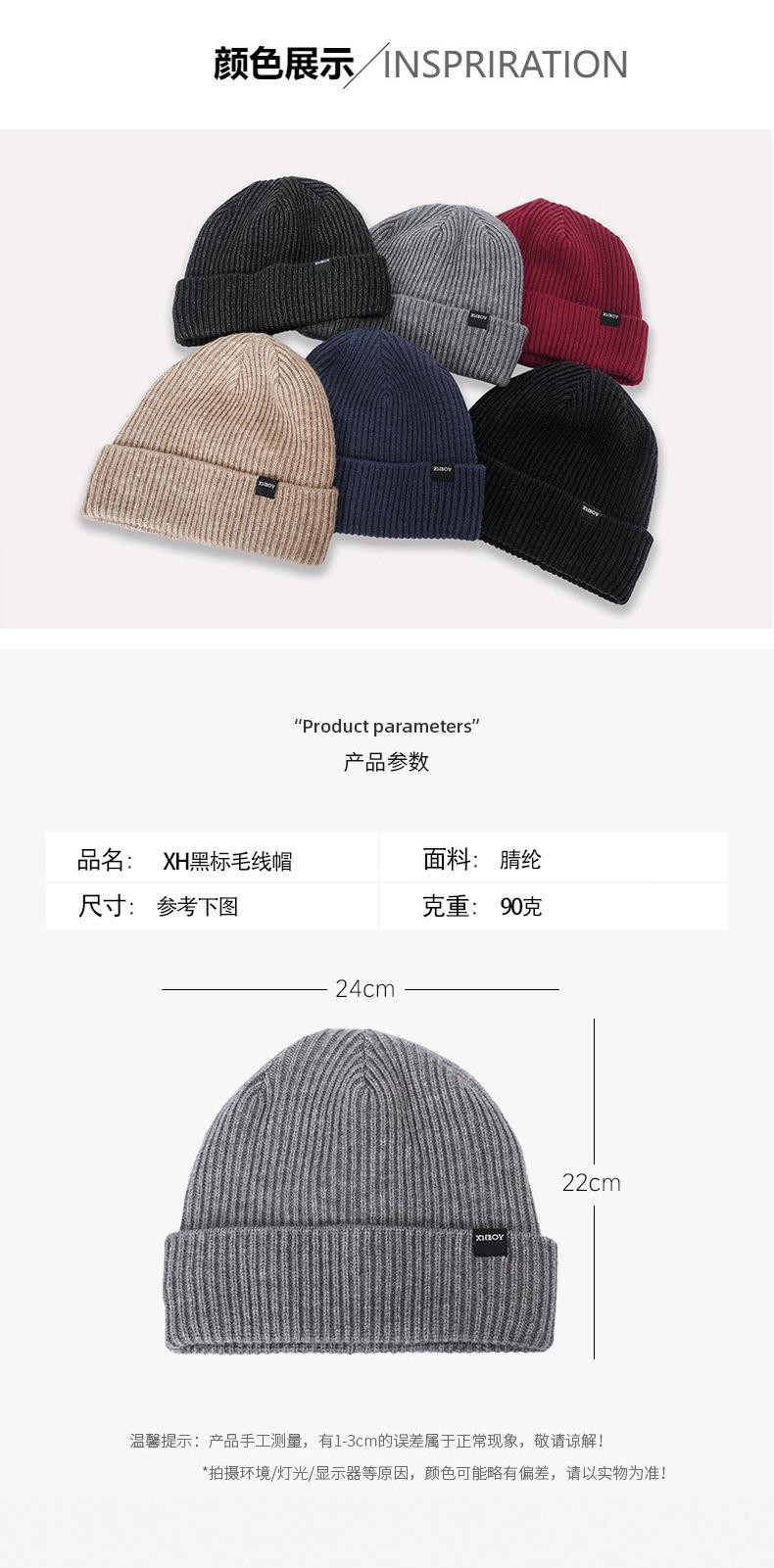 Gorro de Lana Transfronterizo Europeo y Americano Otoño e Invierno Color Sólido Simple para Hombre Cálido con Forro Polar Grueso para Deportes al Aire Libre Gorro Tejido