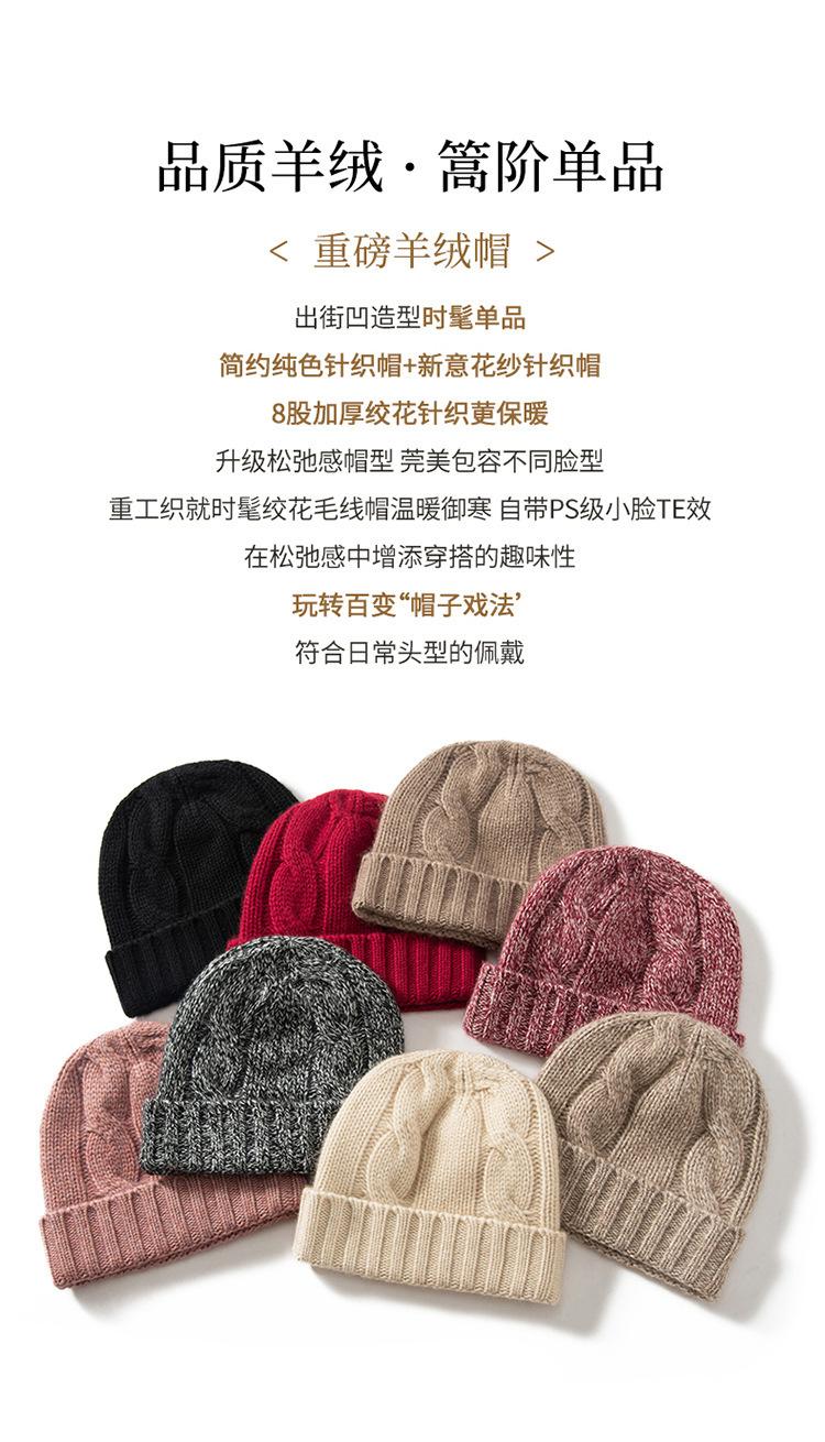 Gorro de Cachemira Invierno Engrosado para Hombre y Mujer Gorro de Cachemira Tejido Gorro Frío de Montón Japón y Corea del Sur Venta al por Mayor Transfronteriza