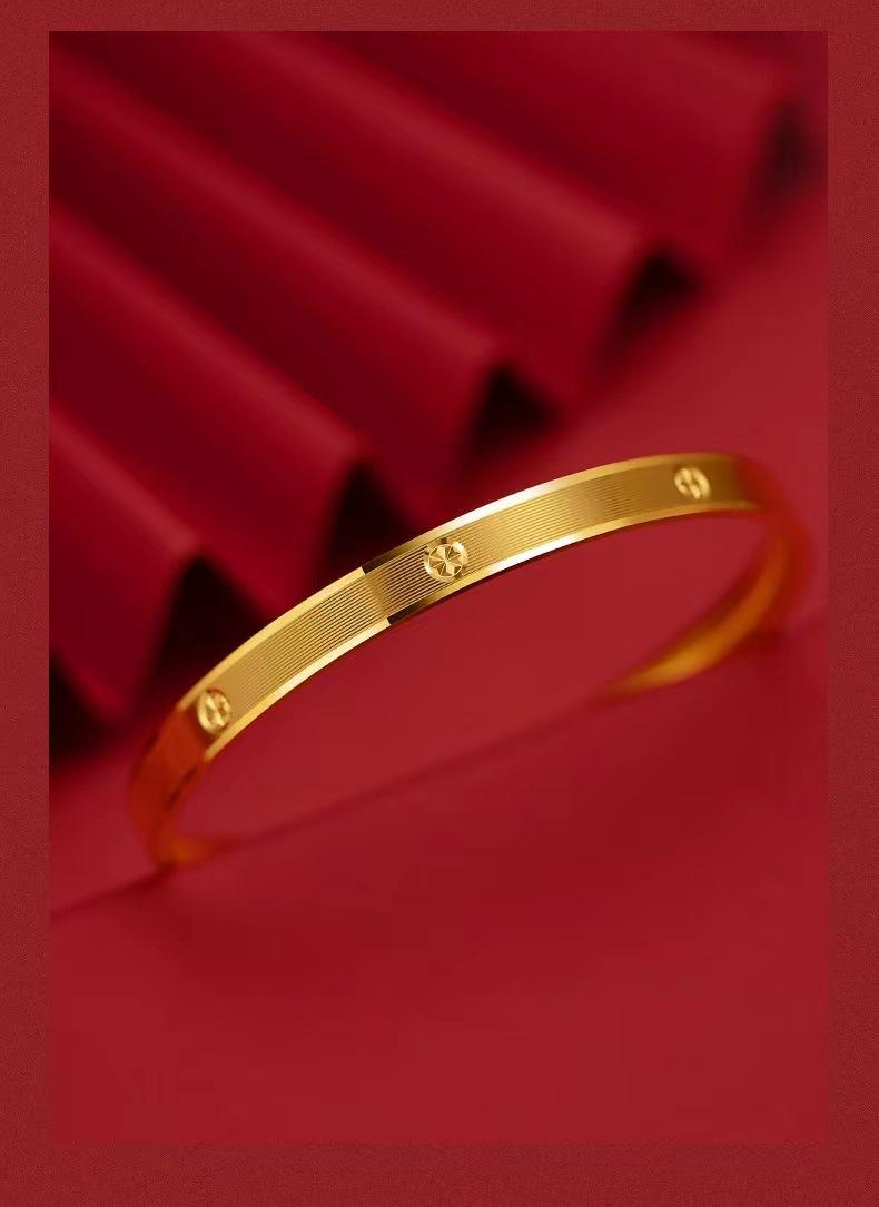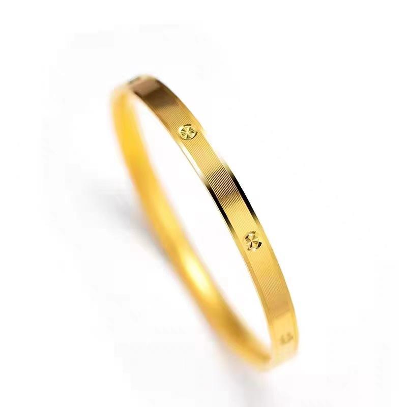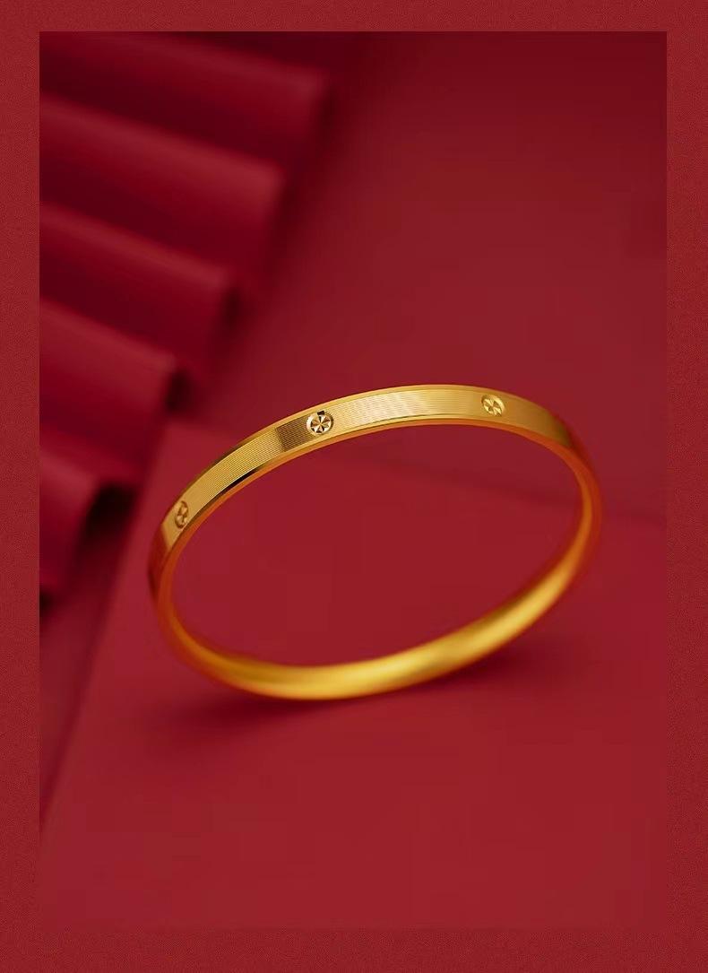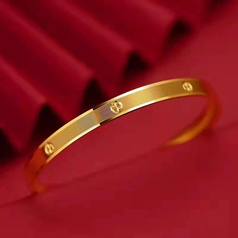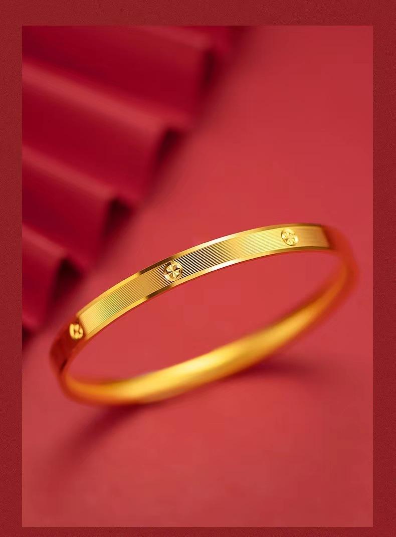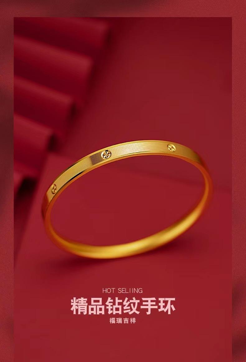 Pulsera con patrón de diamante CNC de oro y arena de Vietnam, pulsera cerrada de temperamento femenino, pulsera de joyería chapada en oro y cobre, pulsera de oro de estaño de generación viva