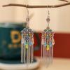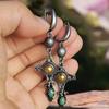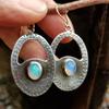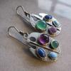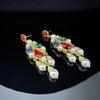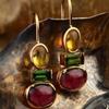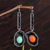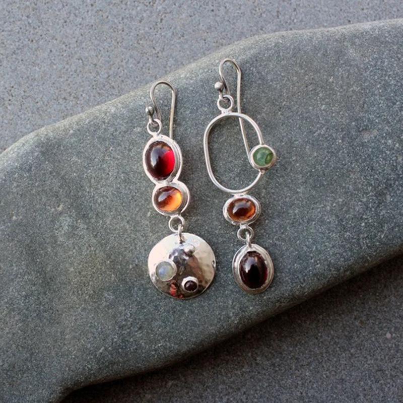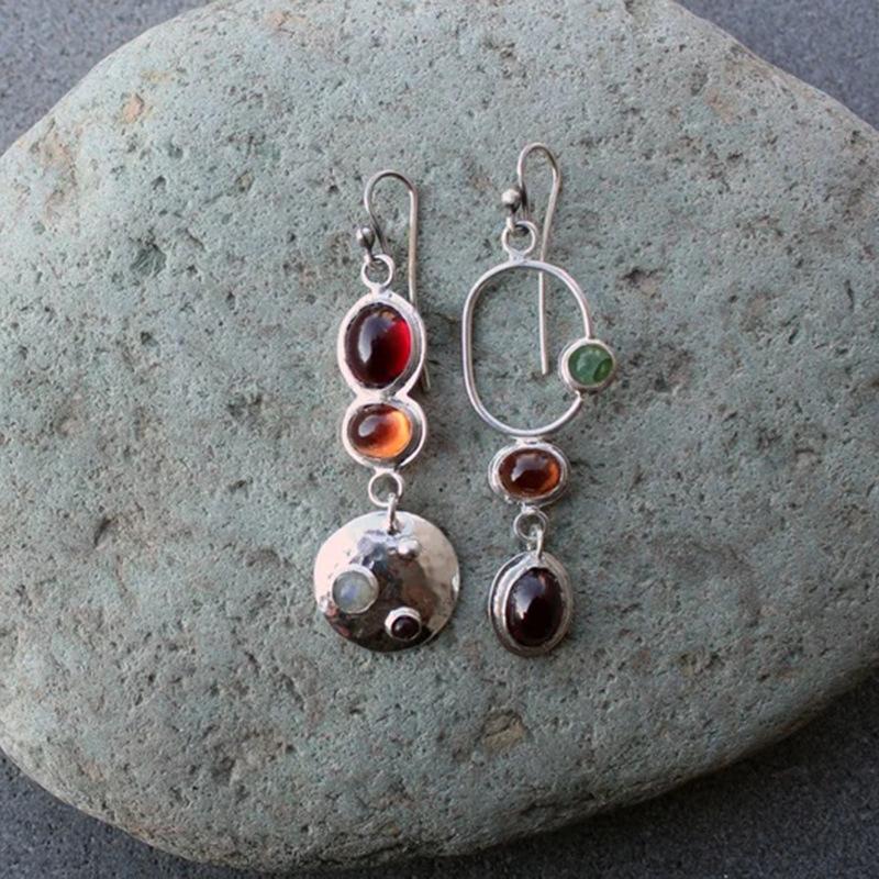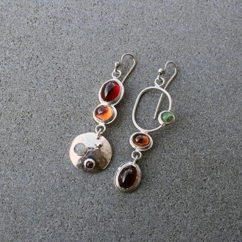 Pendientes de gemas de colores vintage de la época medieval, pendientes creativos geométricos asimétricos hechos a mano para mujer
