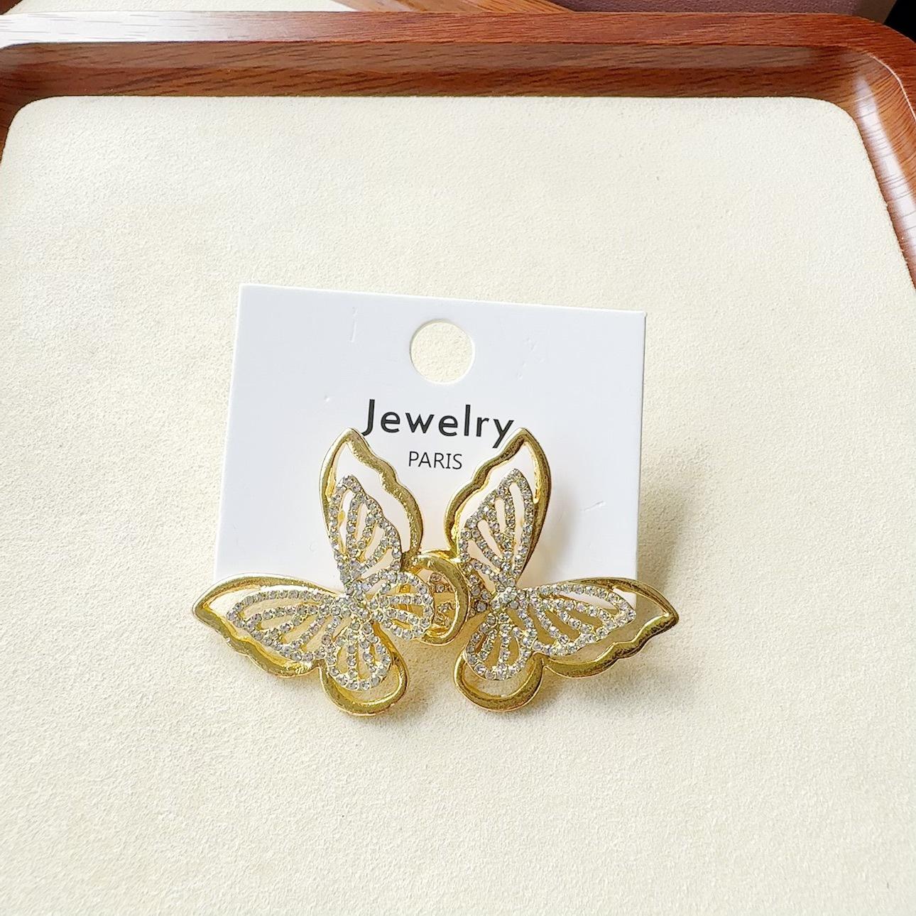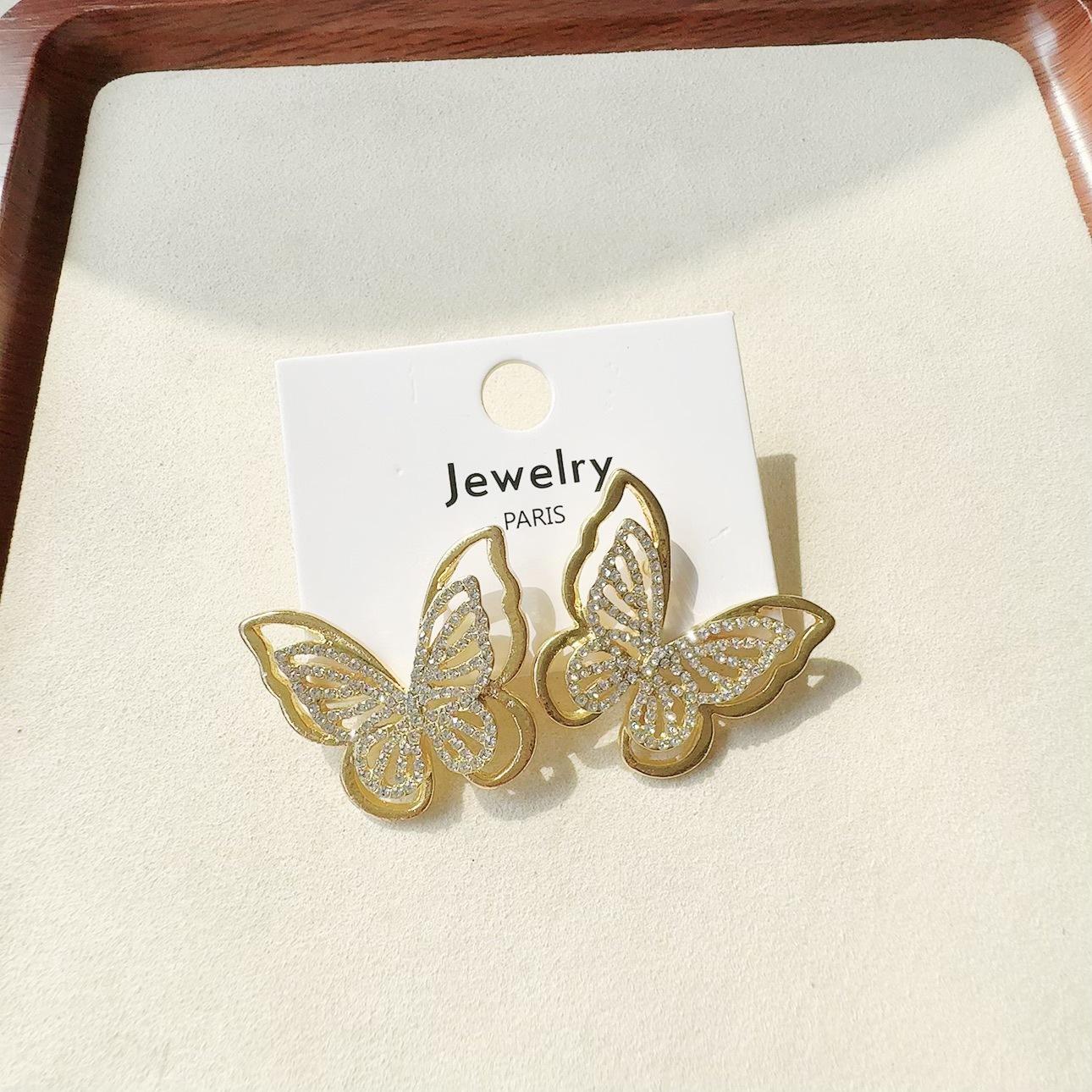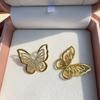 Pendientes de mariposa con diamantes huecos y aguja de plata 925, populares, con temperamento femenino, diseño personalizado, joyería
