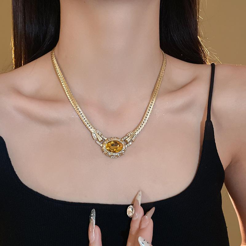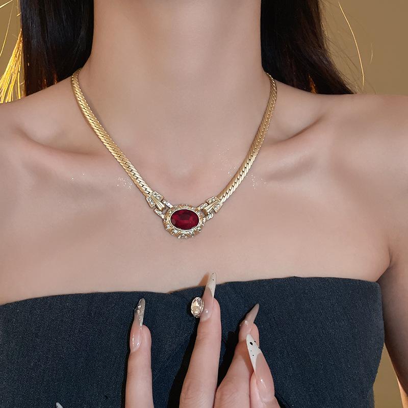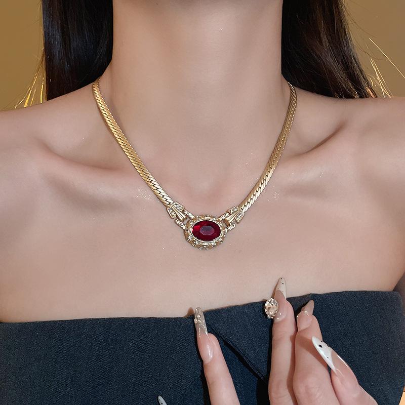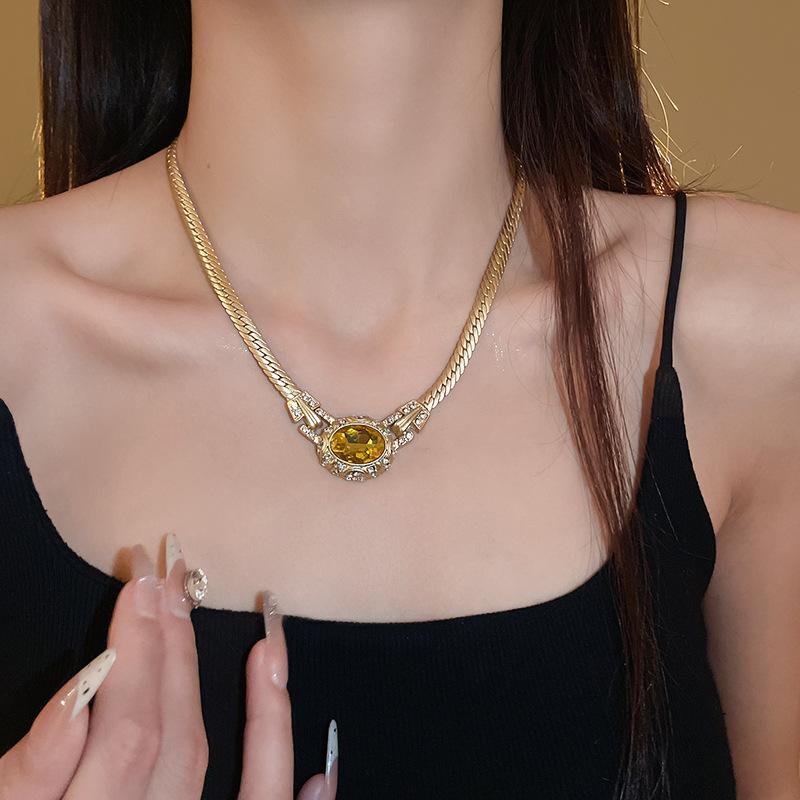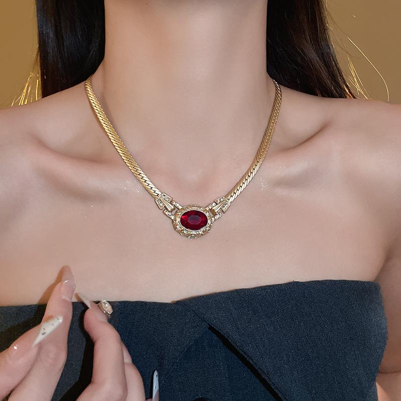 Collar de cadena con diseño de serpiente y hueso de serpiente, estilo palaciego, estilo retro, elegante, vintage, de media antigüedad, para mujer.