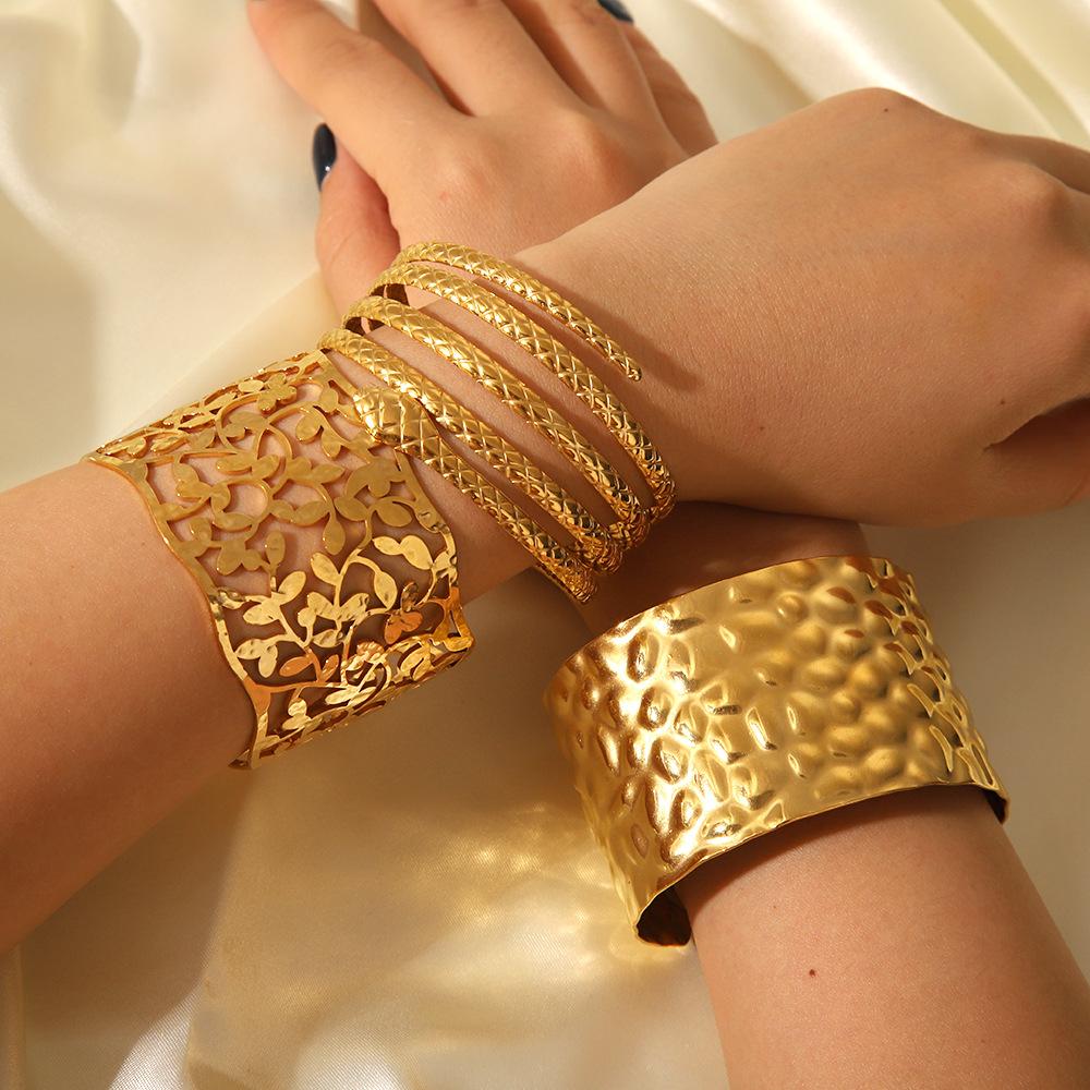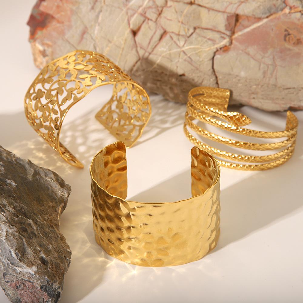 Moda europea y americana nuevo brazalete abierto de acero de titanio de alta calidad exagerado transfronterizo brazalete de acero inoxidable no se desvanece joyería al por mayor