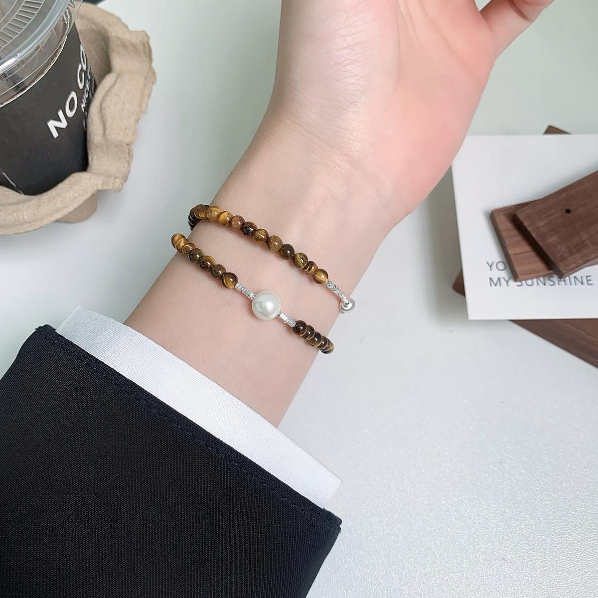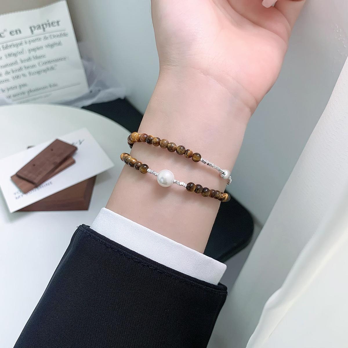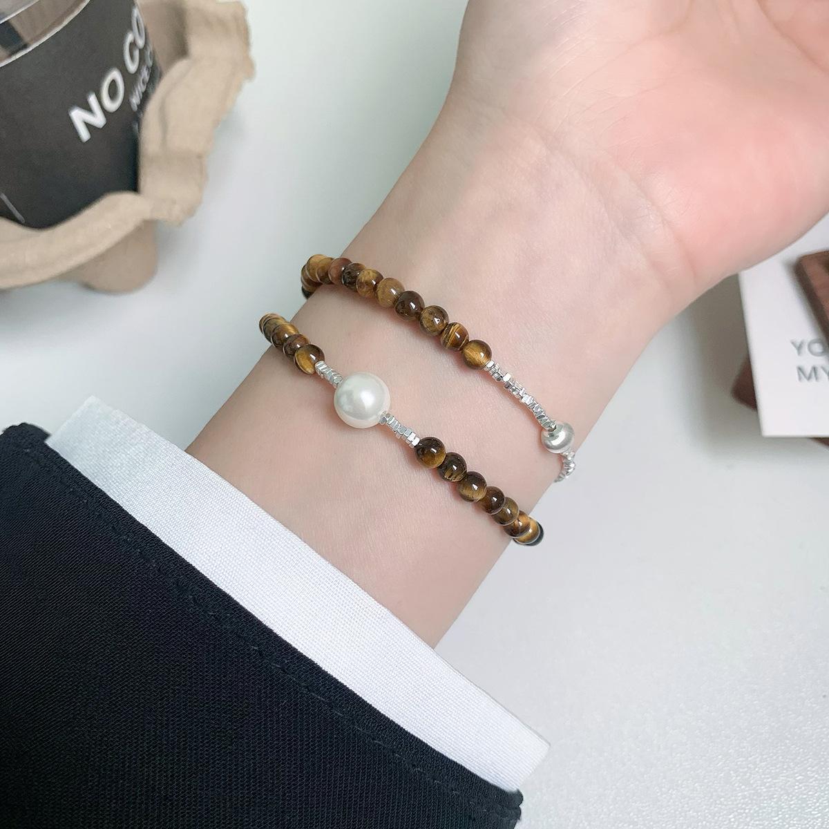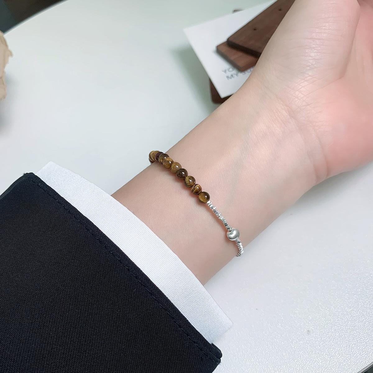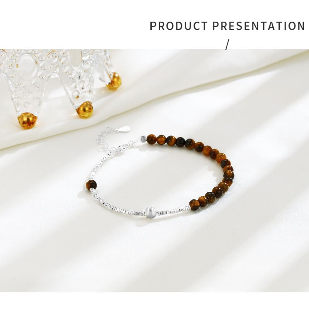 Pulsera de ojo de tigre de plata esterlina S925 con cuentas de gemas, estilo lujoso y elegante, para mujer.