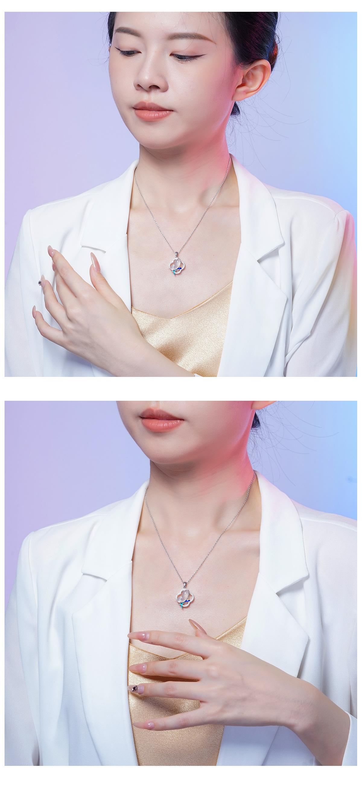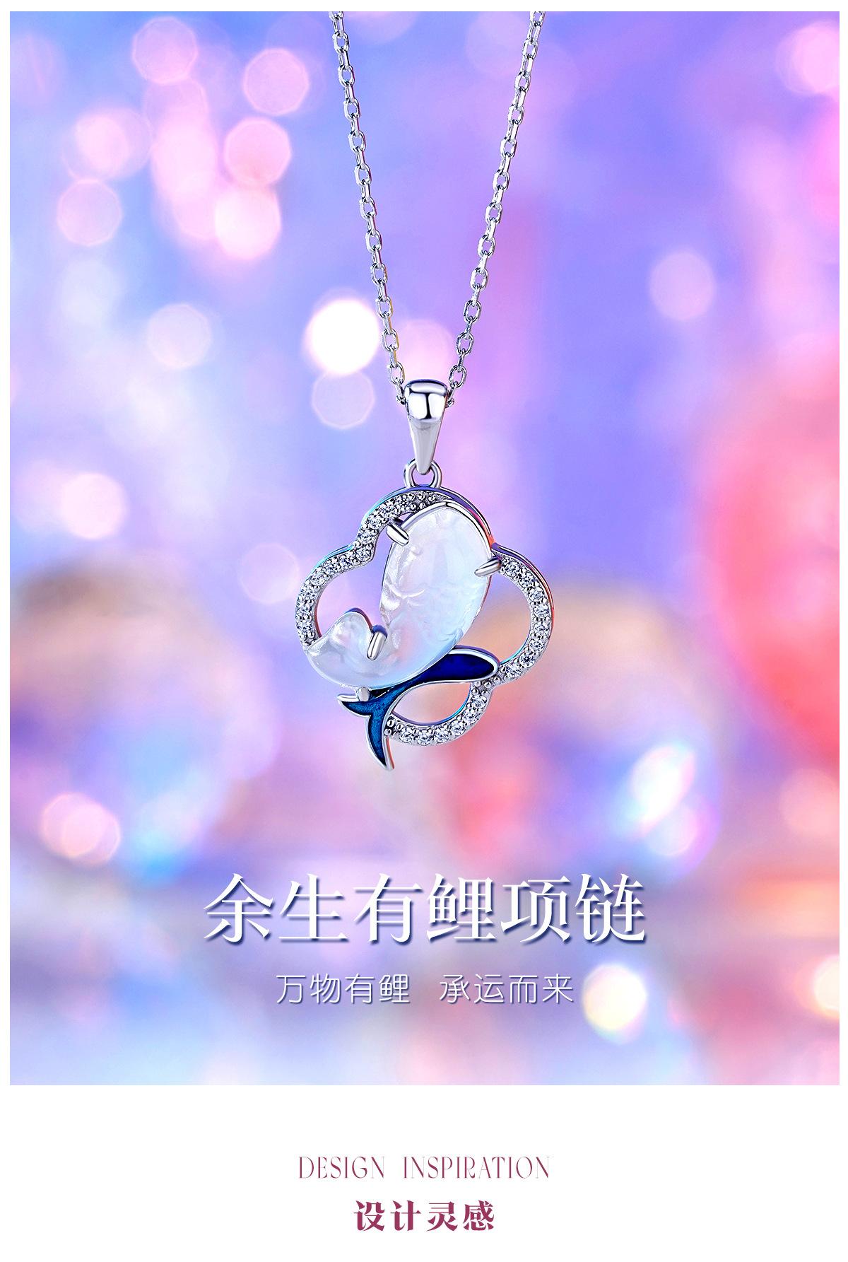 Collar Guofeng S925 de plata esterlina con diseño de koi y calcedonia para mujer, ligero, de lujo, pequeño, estilo chino vintage, con trébol de cuatro hojas, para clavícula.