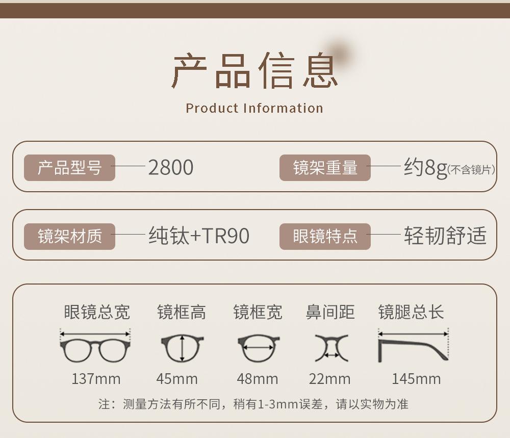 Montura de gafas ultraligera de titanio puro, totalmente de titanio, gafas con número de altura, miopía, para mujer, 2800, gran marca, misma montura de gafas de fábrica