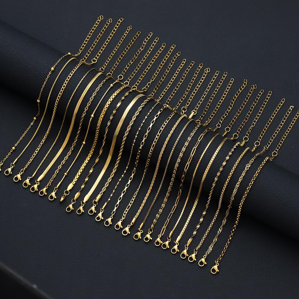 Pulsera de Acero Inoxidable Dorado Venta Caliente Transfronteriza para Mujer Chapada en Oro Real de 18K Moda Pulsera Versátil Joyería Pulsera de Acero de Titanio
