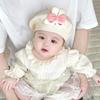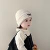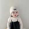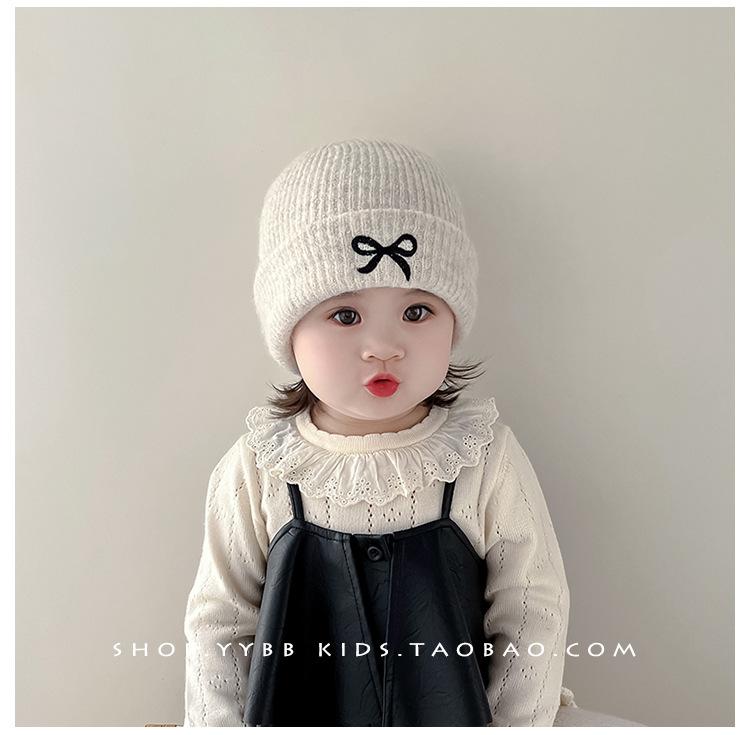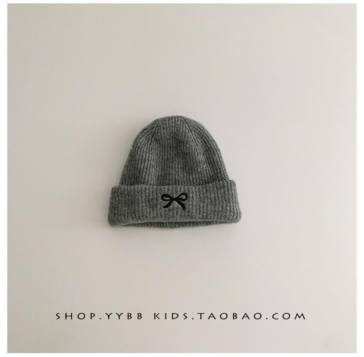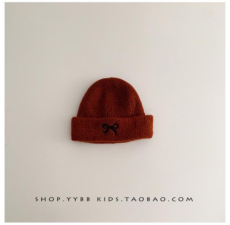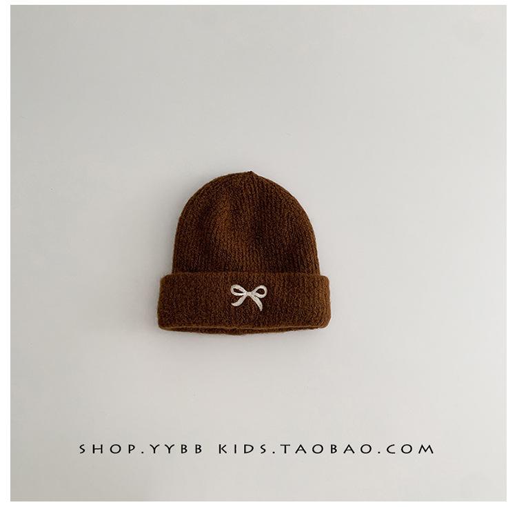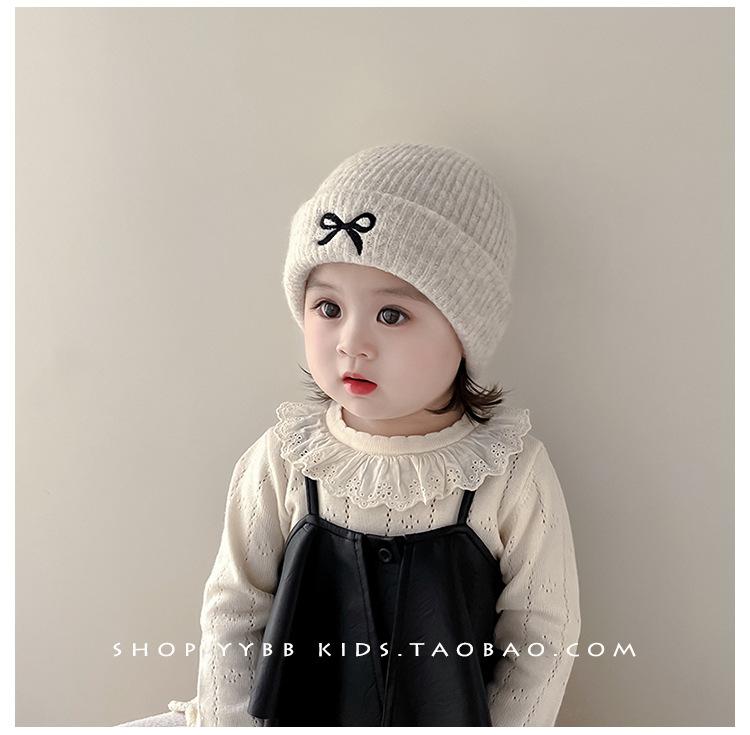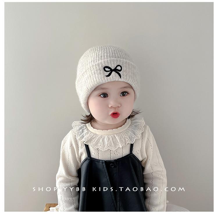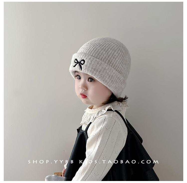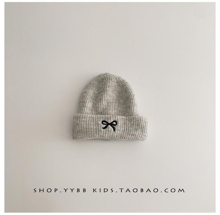 Gorro de punto con lazo bordado coreano para niña, gorro grueso y cálido de otoño e invierno, gorro de lana para niña pequeña a la moda