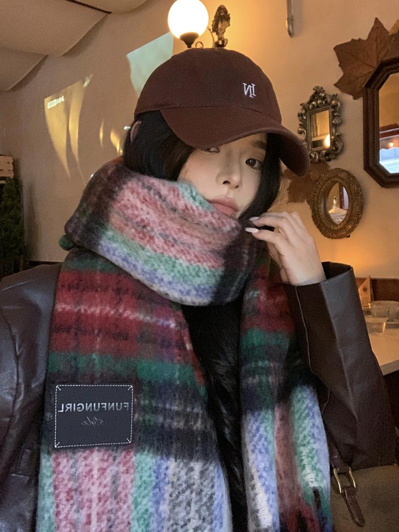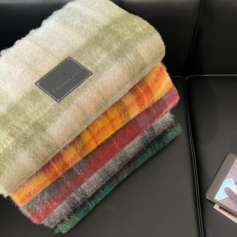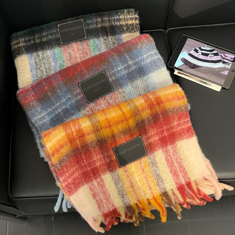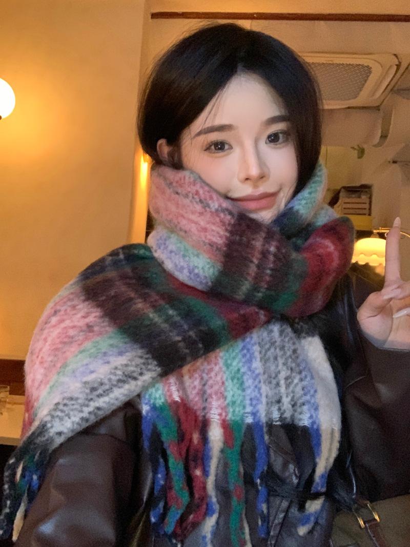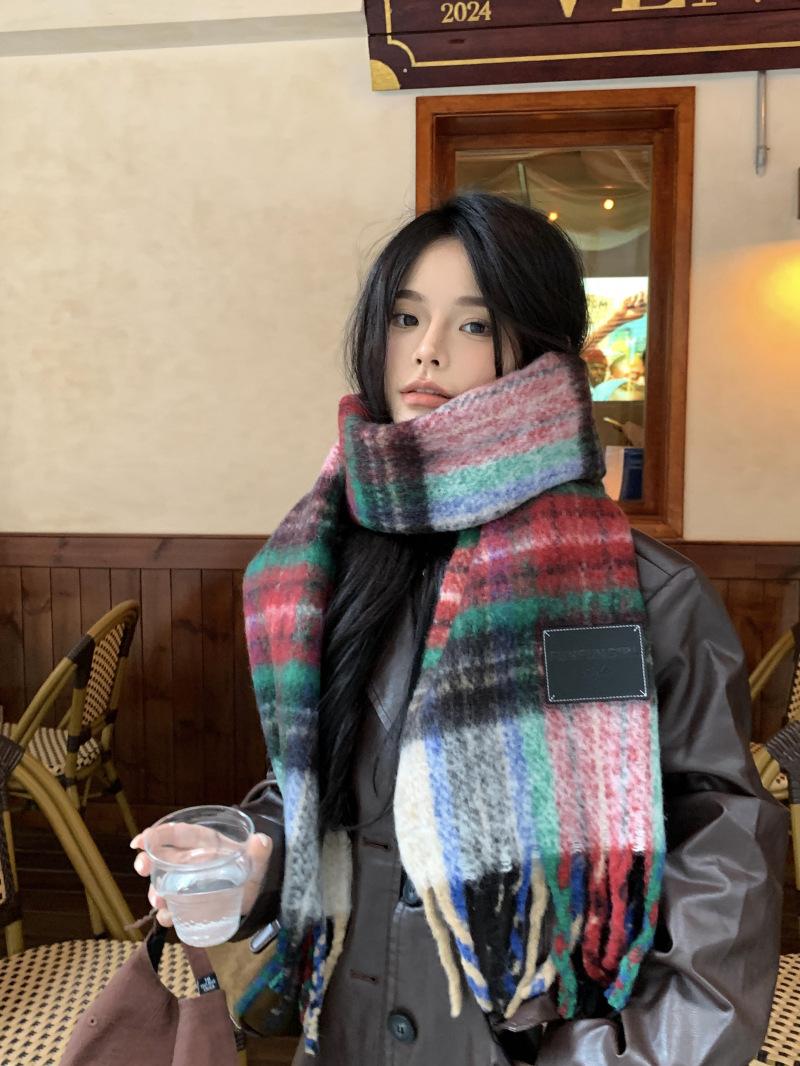 Bufanda nueva de otoño e invierno para hombres y mujeres, del mismo estilo, con todos los colores a juego, bufanda a cuadros arcoíris, bufanda chal gruesa y cálida de alta calidad.