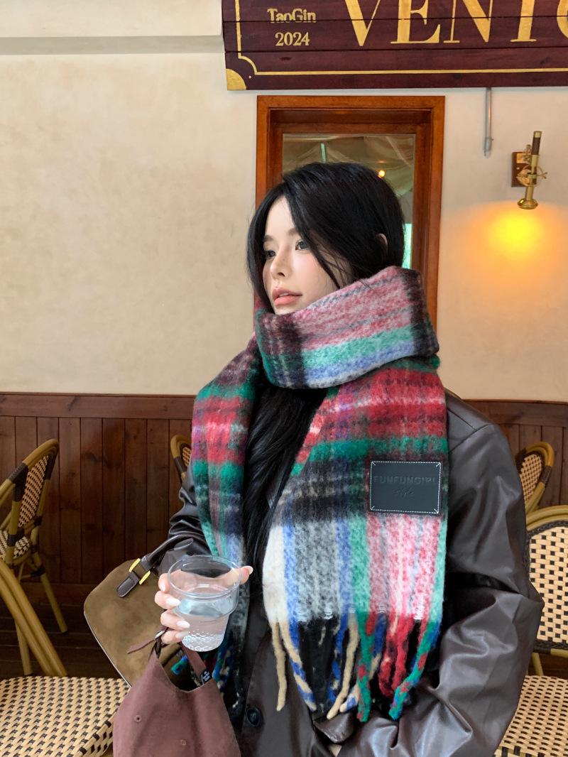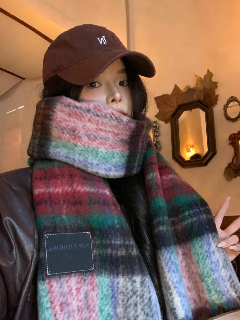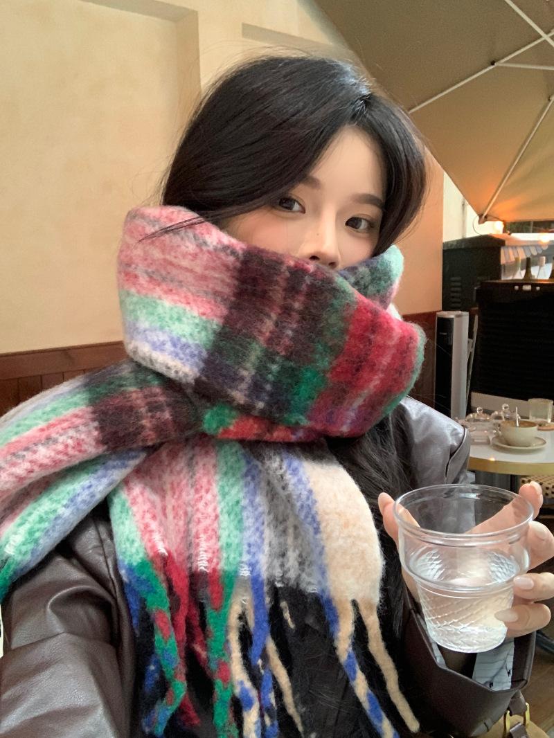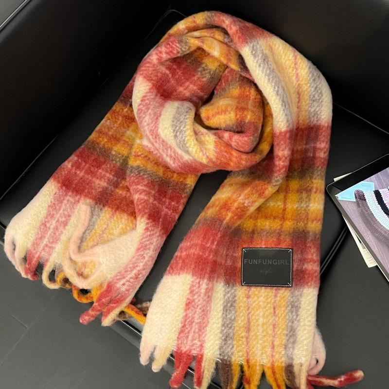 Bufanda nueva de otoño e invierno para hombres y mujeres, del mismo estilo, con todos los colores a juego, bufanda a cuadros arcoíris, bufanda chal gruesa y cálida de alta calidad.