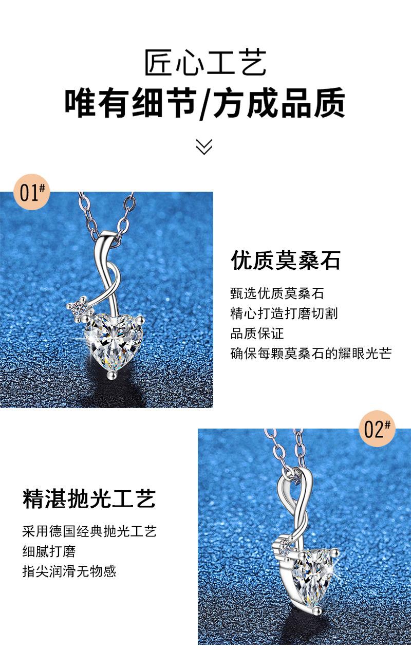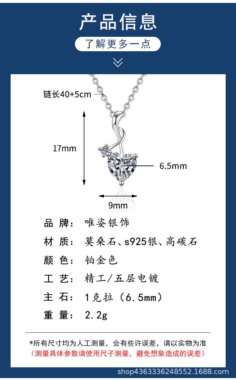 Colgante japonés y coreano de plata esterlina S925 para mujer, colgante de diamante Mosan de amor simple, collar de moissanita de color D de 1 quilate para mujer, venta al por mayor