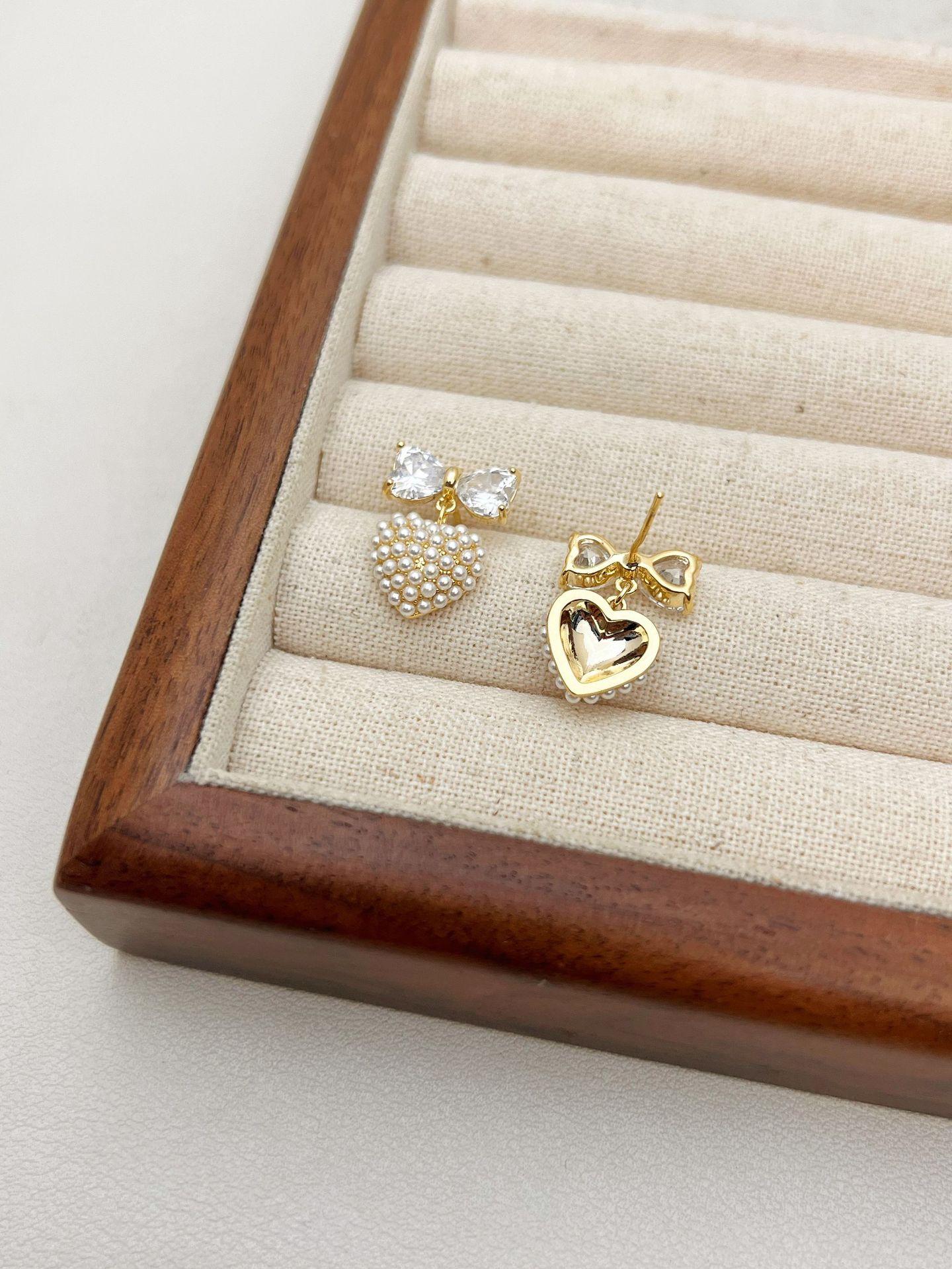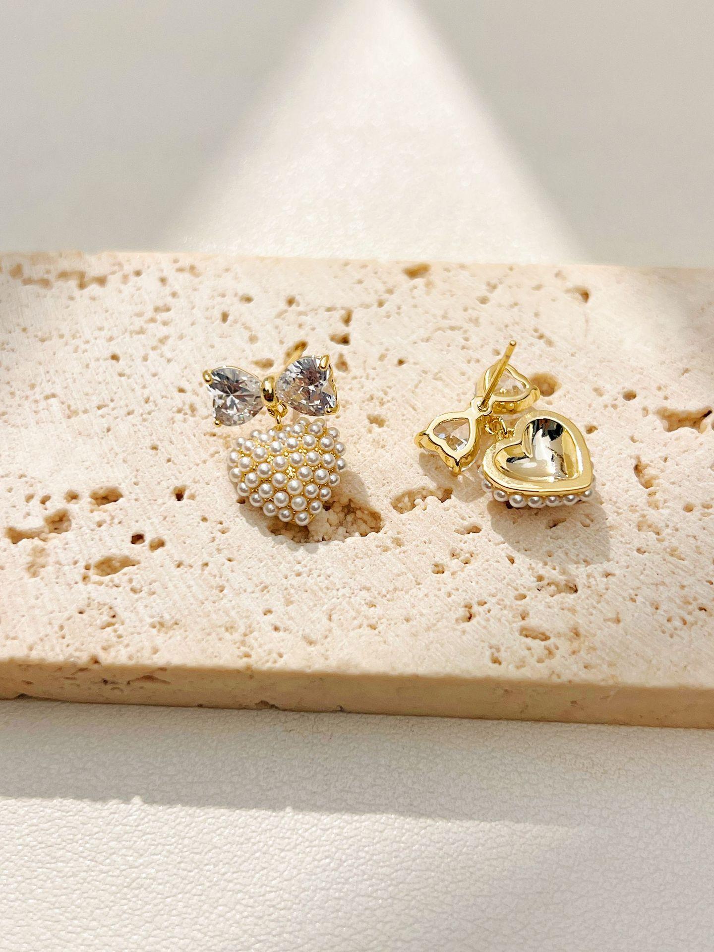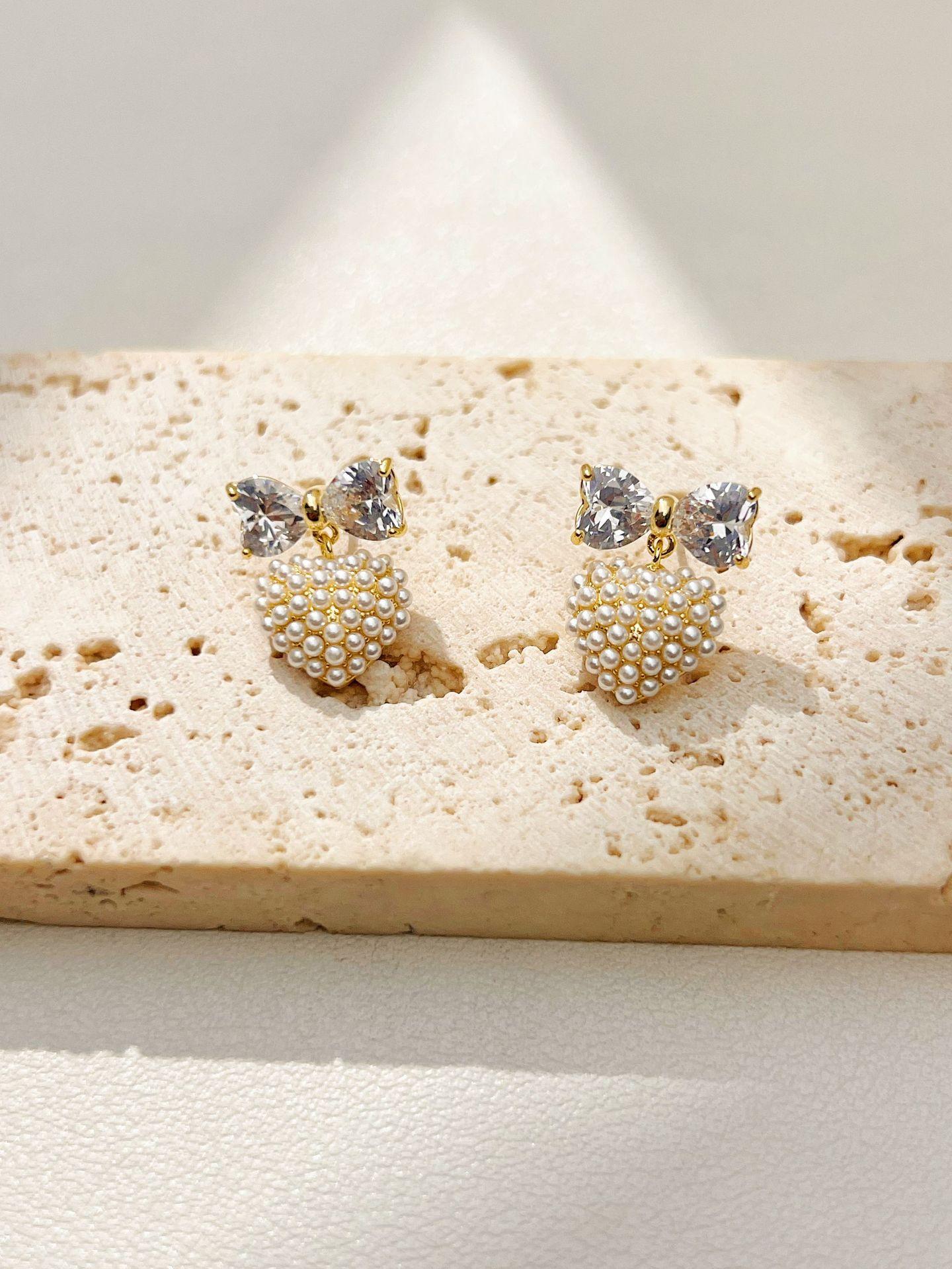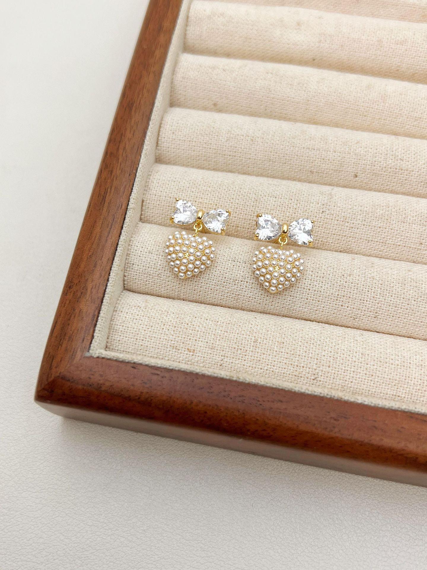 Compra Pendientes de perlas de amor de lujo ligeros, de alta gama, a juego, hechos a mano, con microincrustaciones y diseño de nicho. al por mayor en Joom.pro