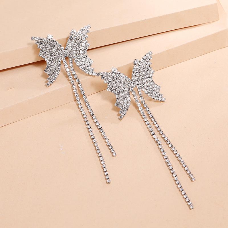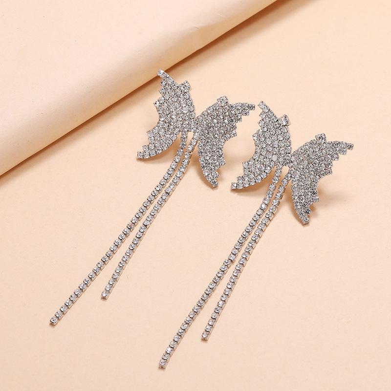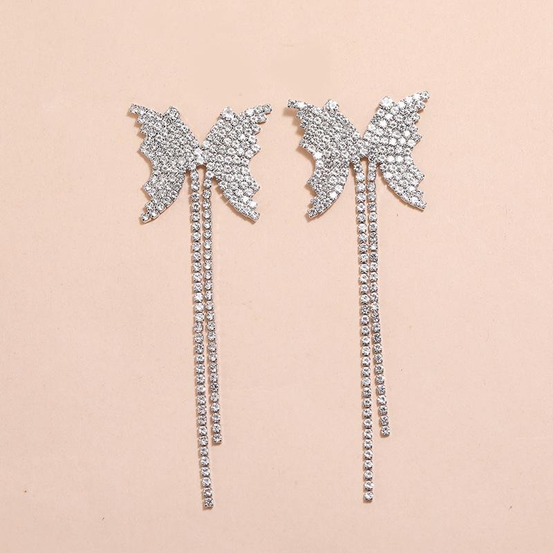Compra Pendientes de Borla de Mariposa Elegantes de Diamante Completo Simples y Modernos de Aguja de Plata S925 Creativos Exagerados de Personalidad de Moda Europea y Americana al por mayor en Joom.pro