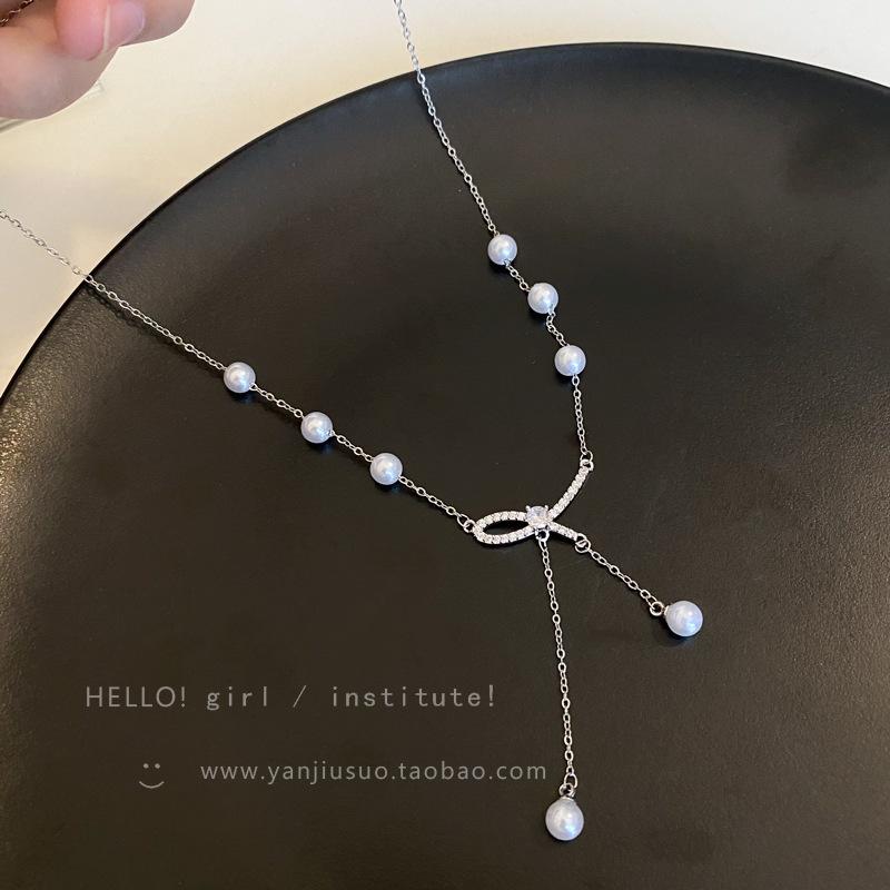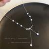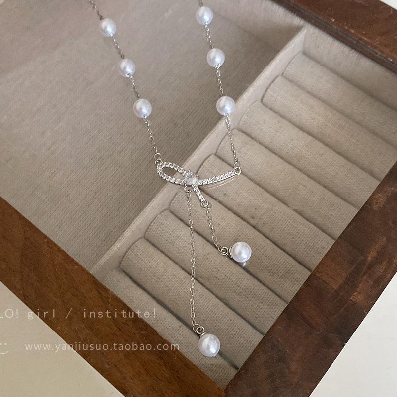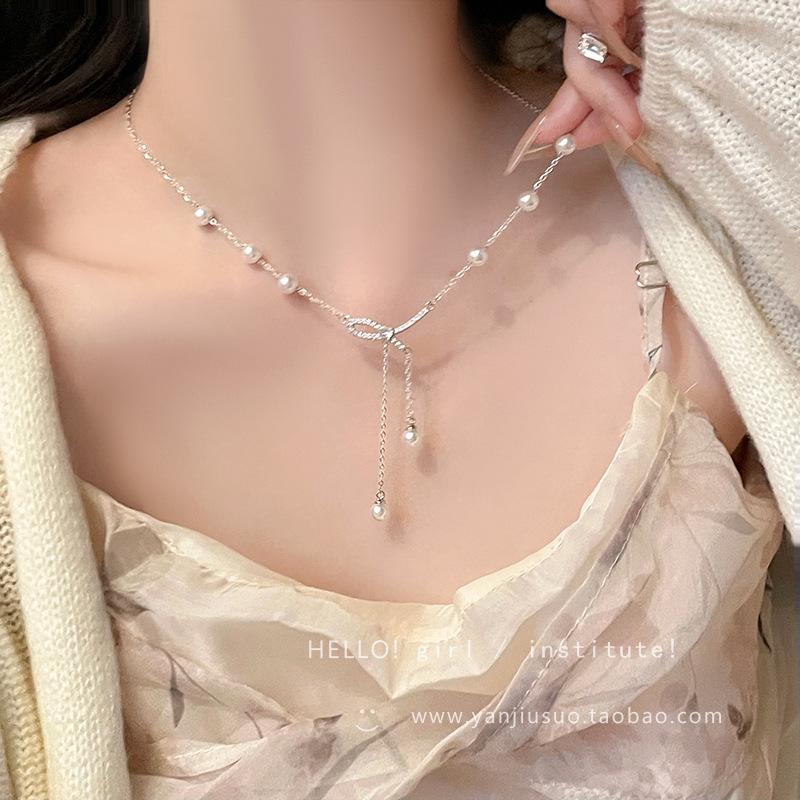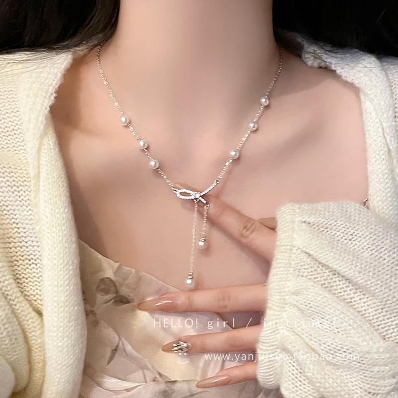 ¡Carta de amor romántica!! Collar con borla de perla y lazo para mujer, diseño de collar de nicho de lujo ligero con sentido avanzado de cadena de clavícula