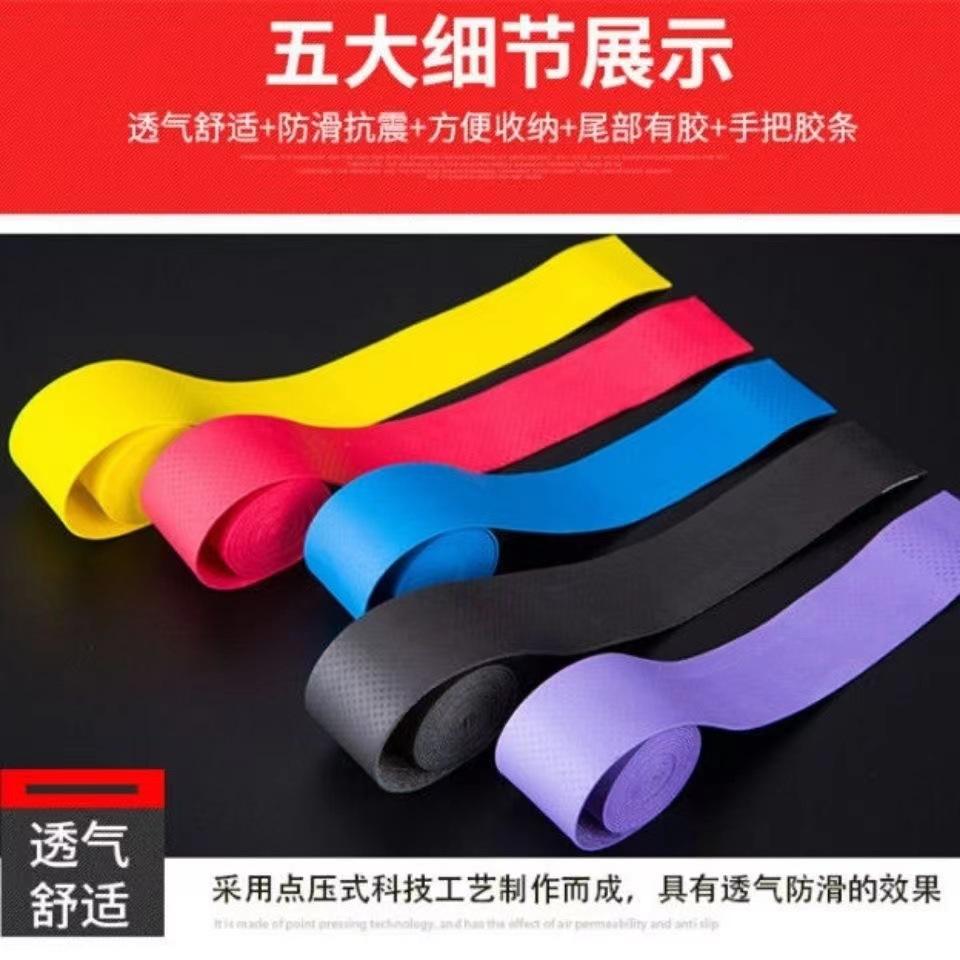 Venta al por mayor de raquetas de bádminton, pegamento de mano, raqueta de tenis, cinturón absorbente de sudor, cinturón plano antideslizante, caña de pescar, correa de goma de mano para enrollar