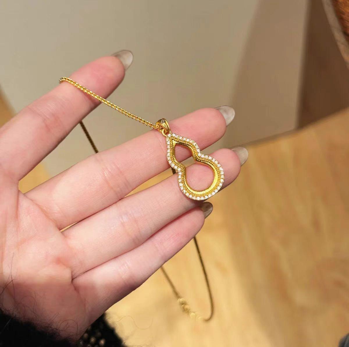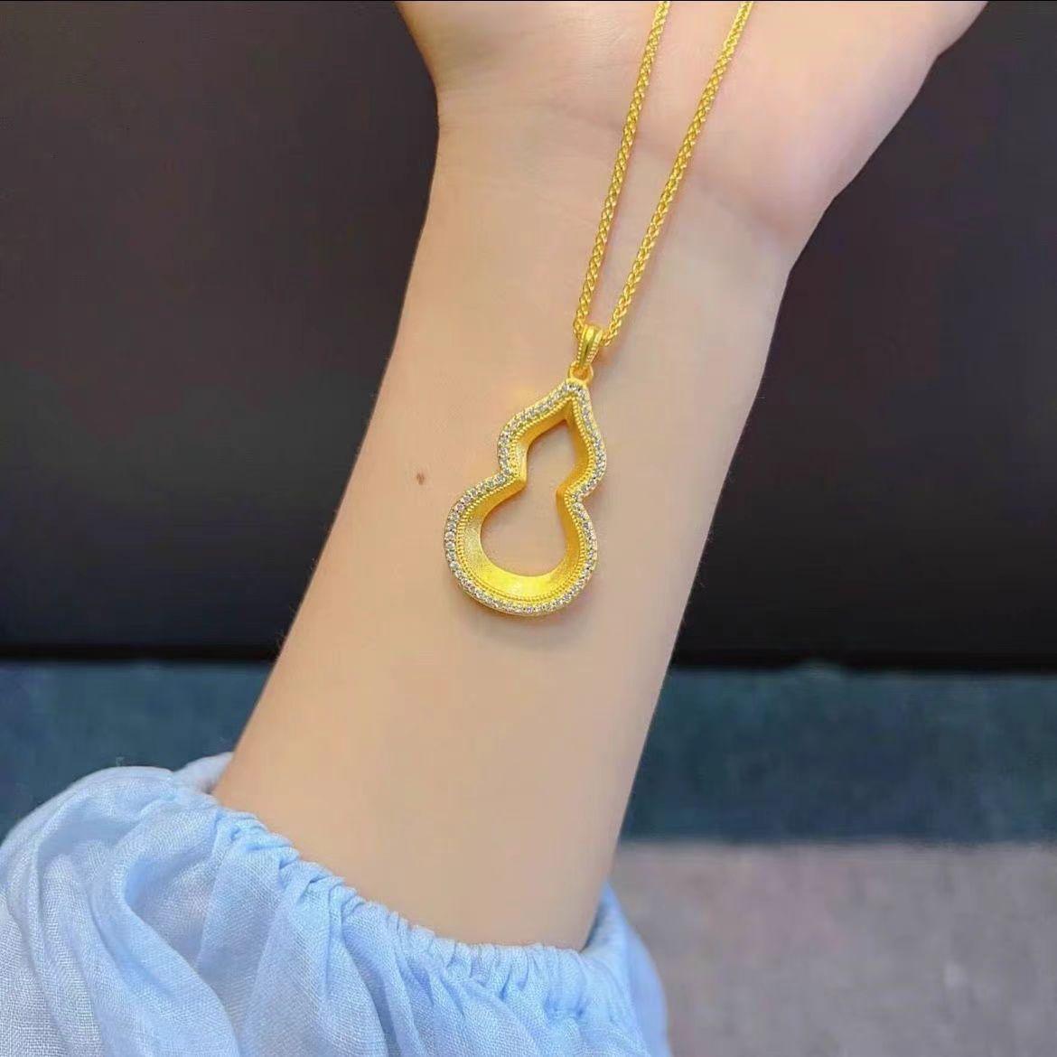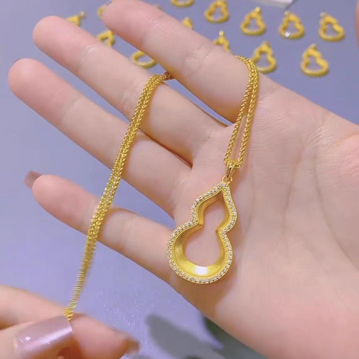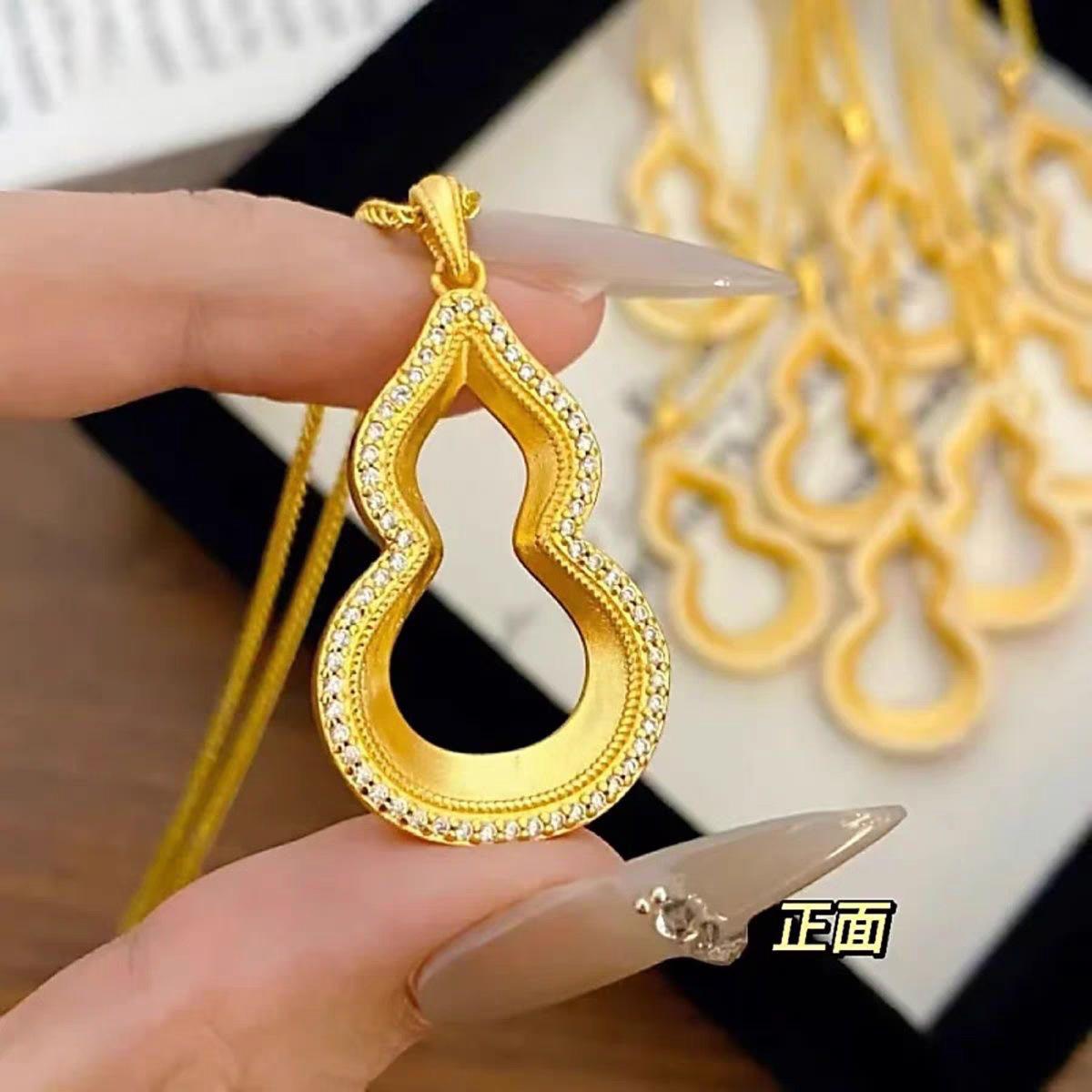 Colgante de oro con arena de calabaza Fuxi, collar antiguo con diamantes huecos, ligero y de lujo, estilo chino nuevo, Fulu Diamond Gold Shop, mismo estilo