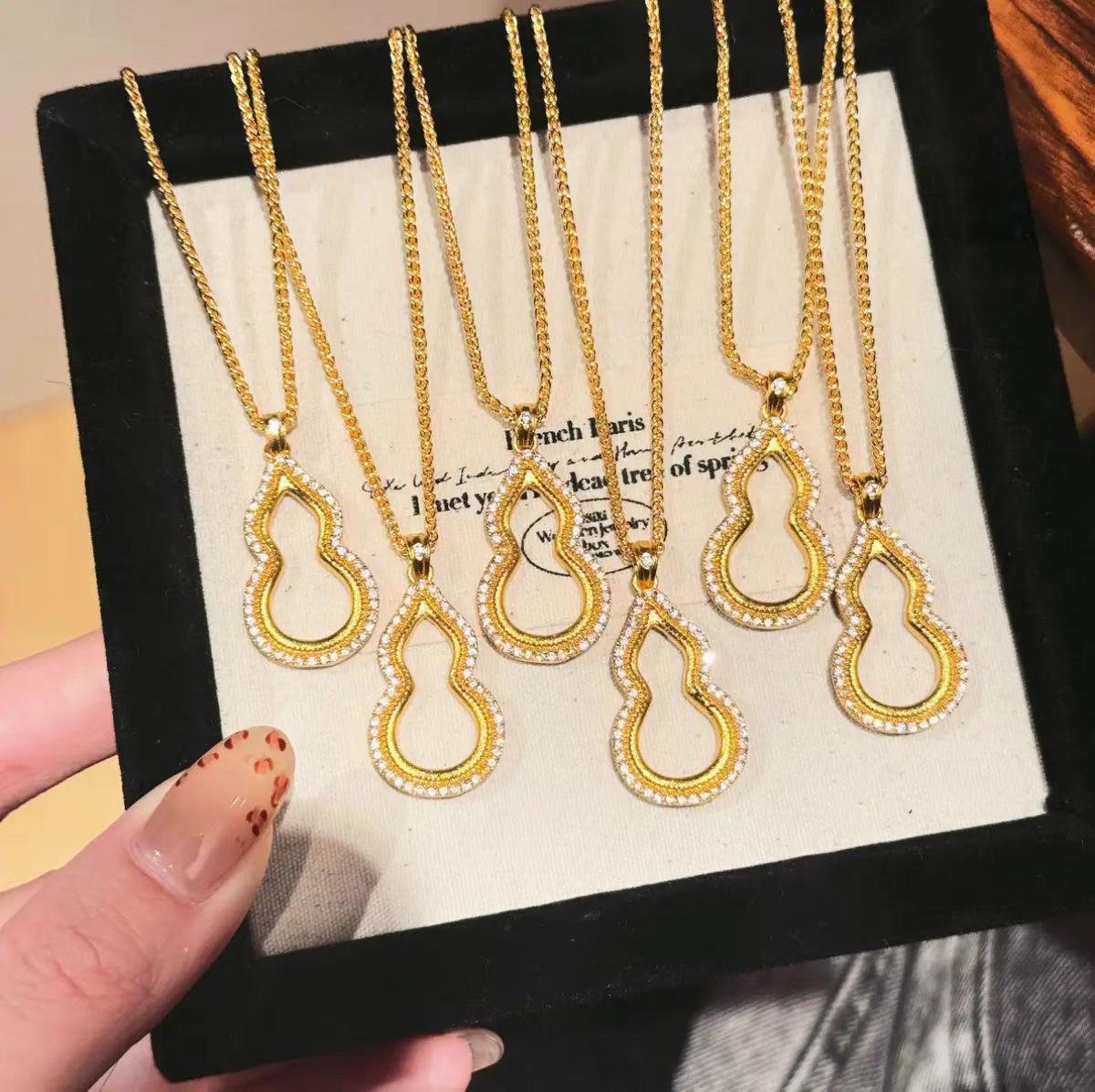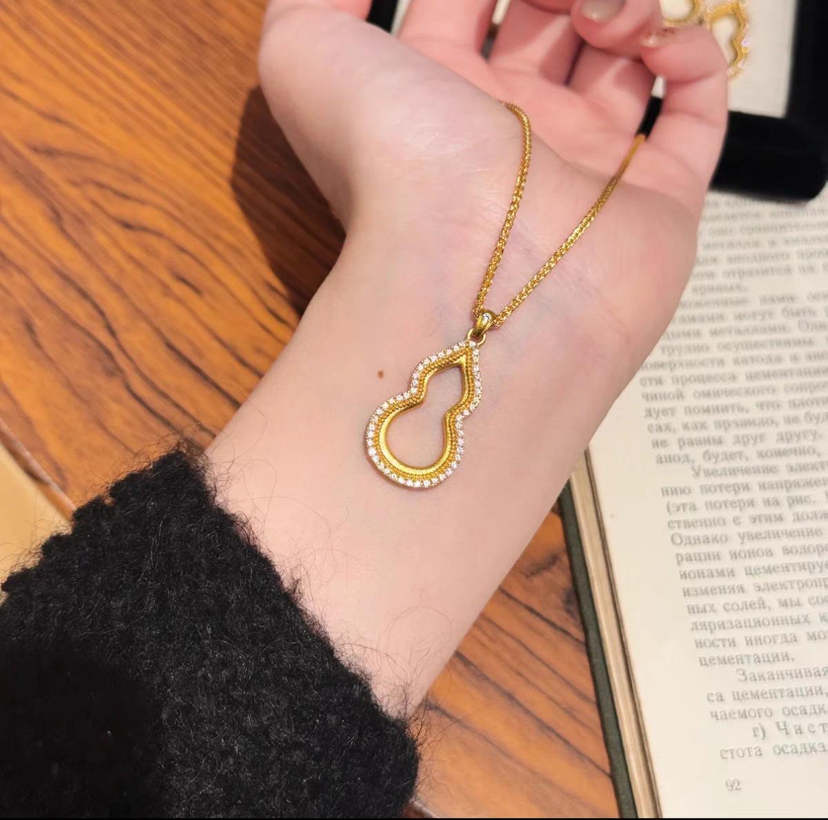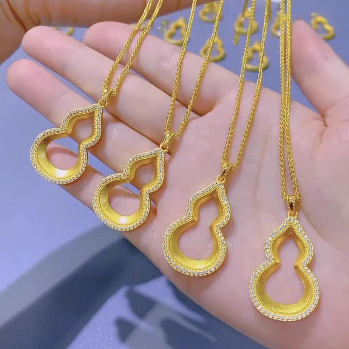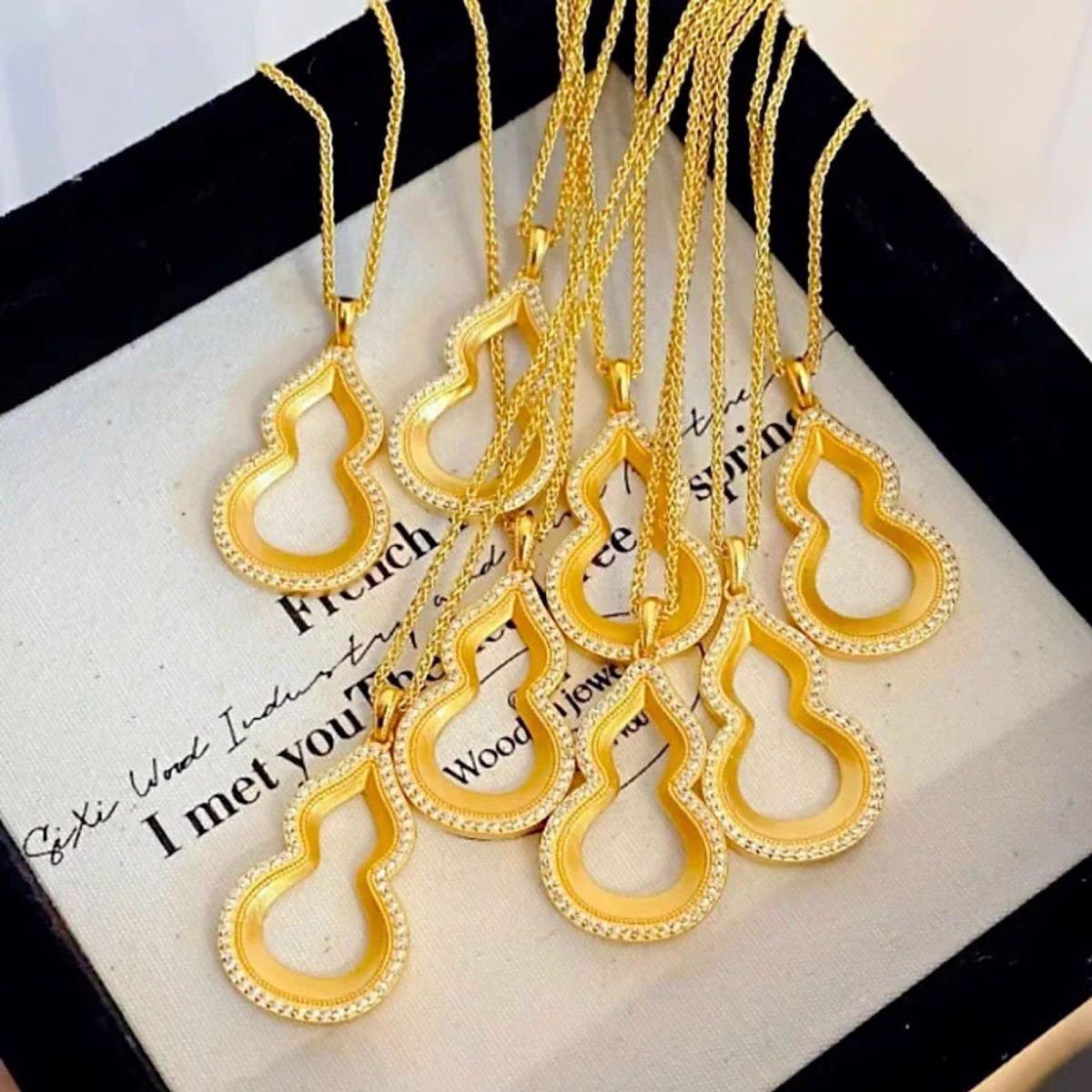 Colgante de oro con arena de calabaza Fuxi, collar antiguo con diamantes huecos, ligero y de lujo, estilo chino nuevo, Fulu Diamond Gold Shop, mismo estilo