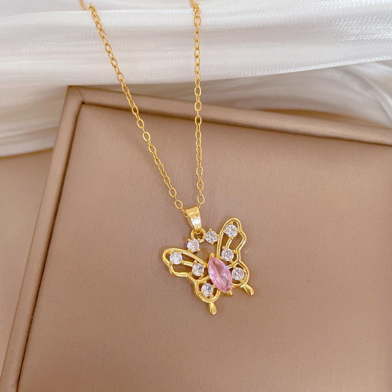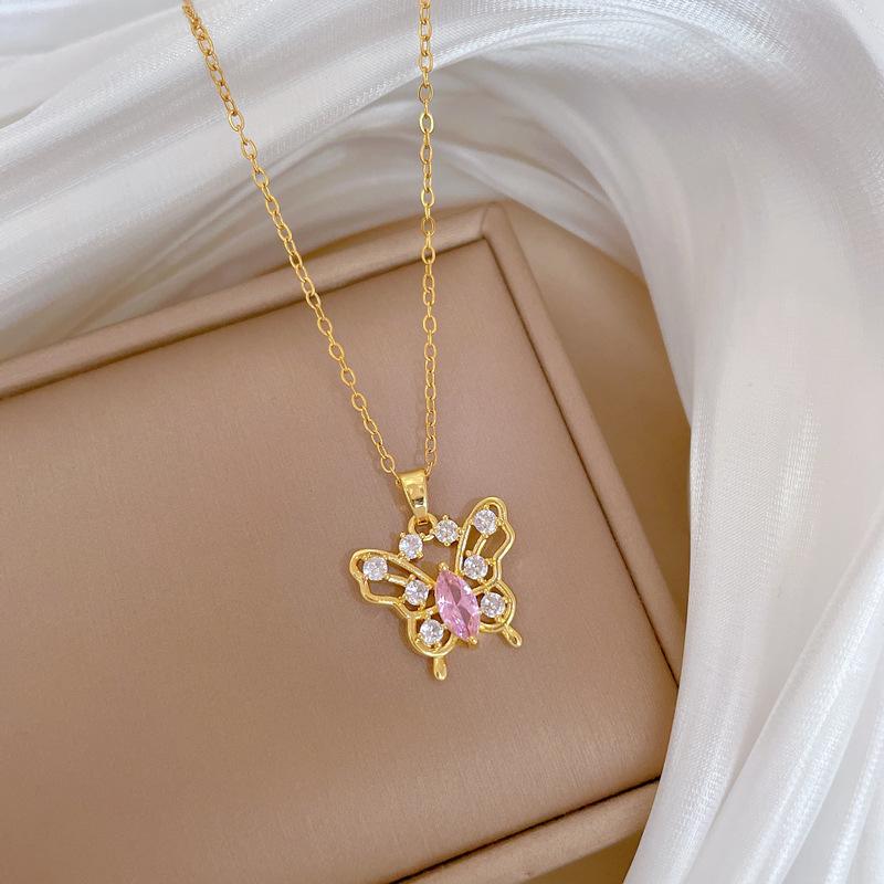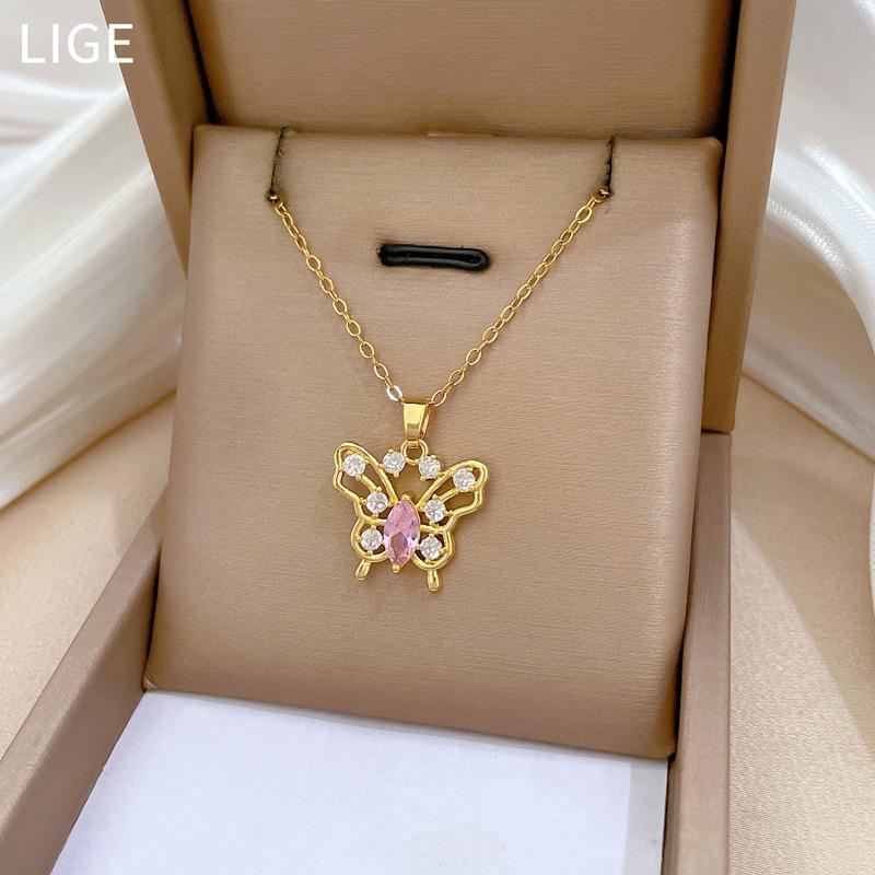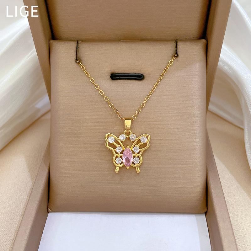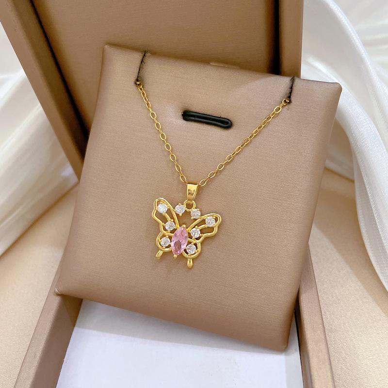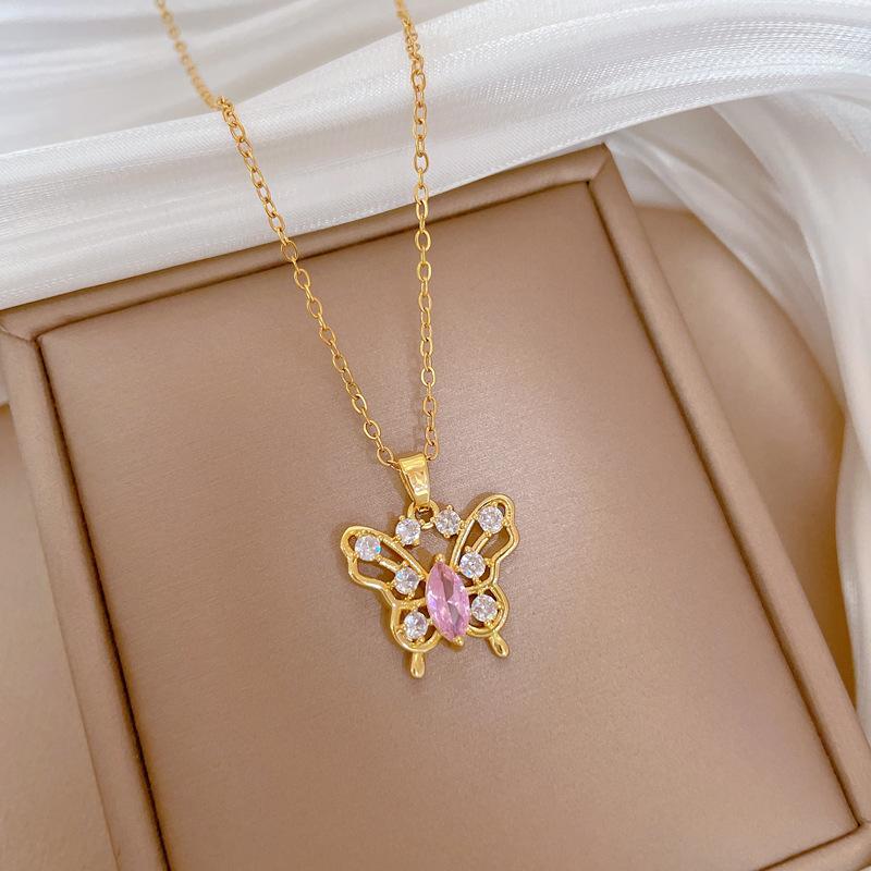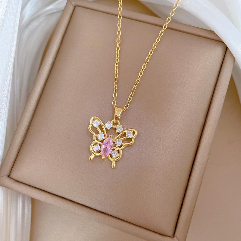 [Acero de titanio] Collar elegante y lujoso con diseño de mariposa hueca y diamantes, cadena de clavícula para mujer, cadena de acero de titanio.