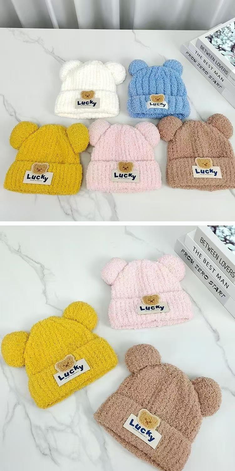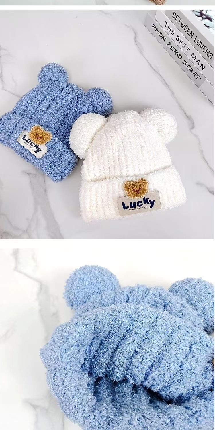 Gorro de invierno para bebé, gorro de bebé, gorro de punto cálido de felpa para niño, conjunto de dos piezas para niño y niña.