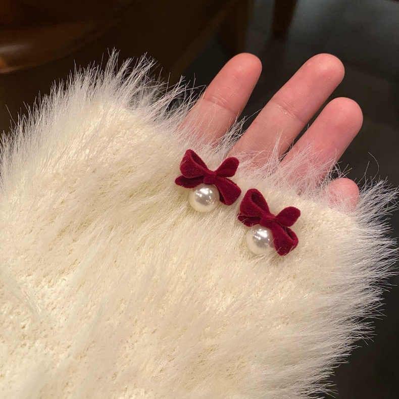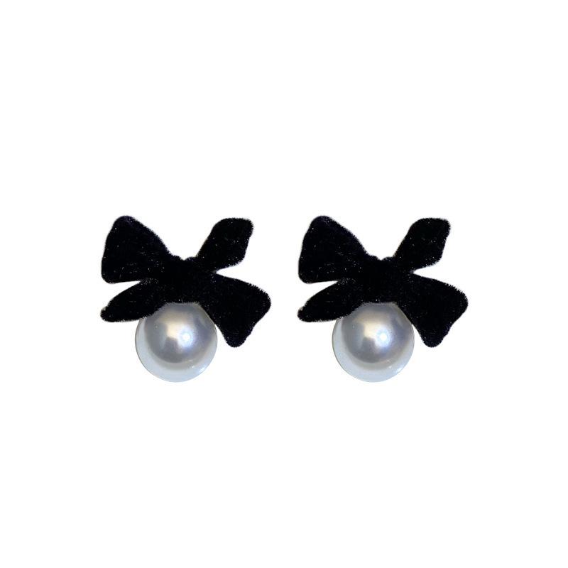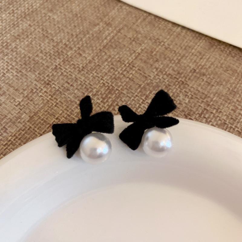 Pendientes de lazo de perla retro franceses, exquisitos pendientes elegantes que combinan con todo.