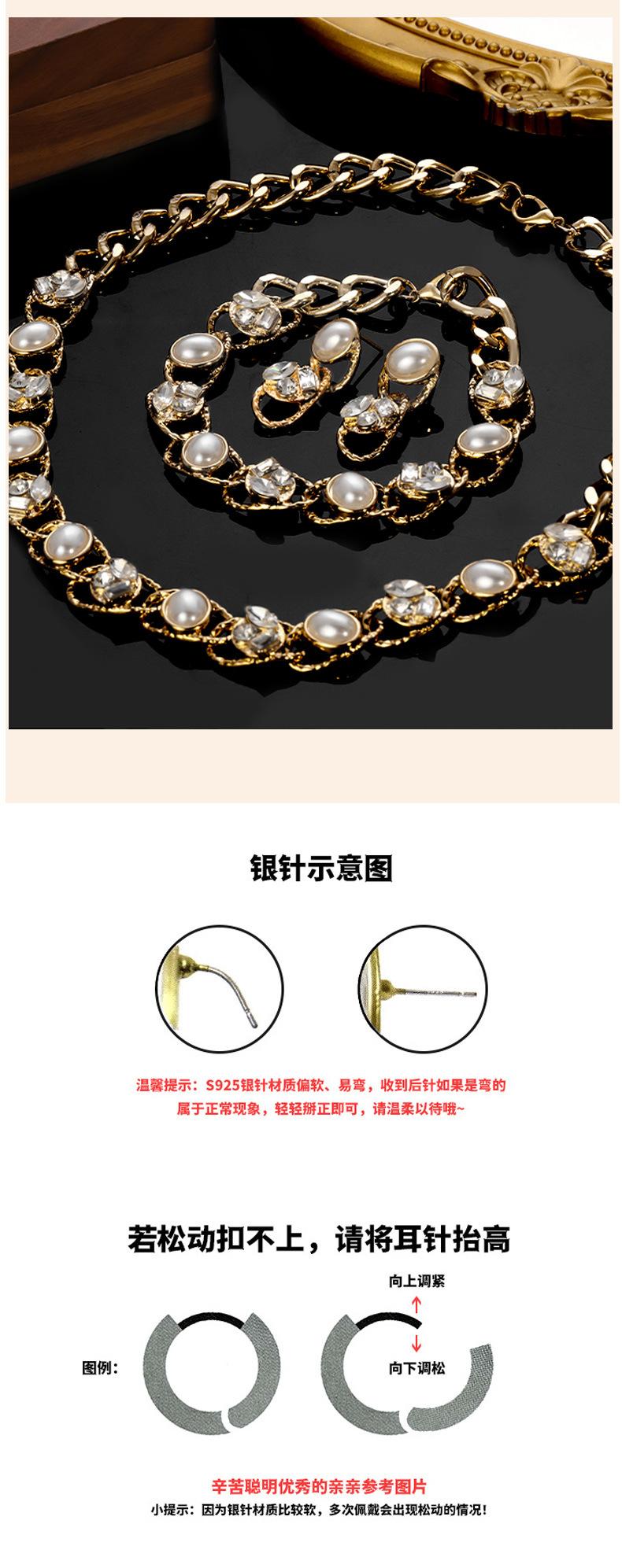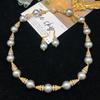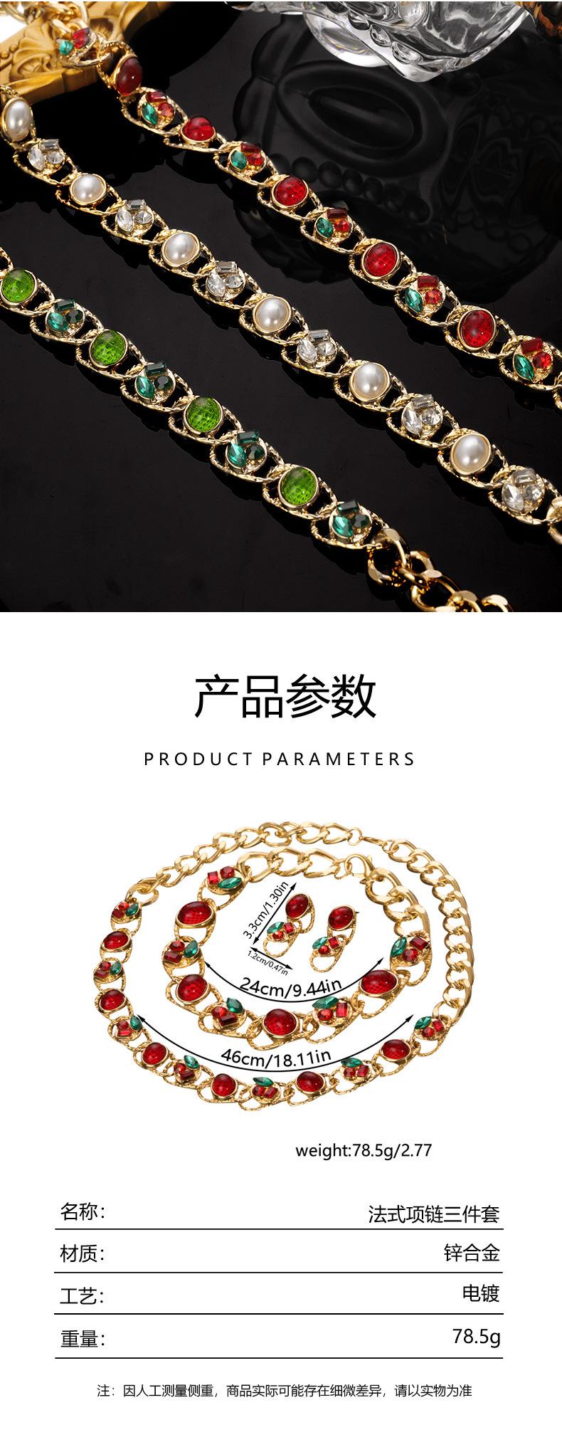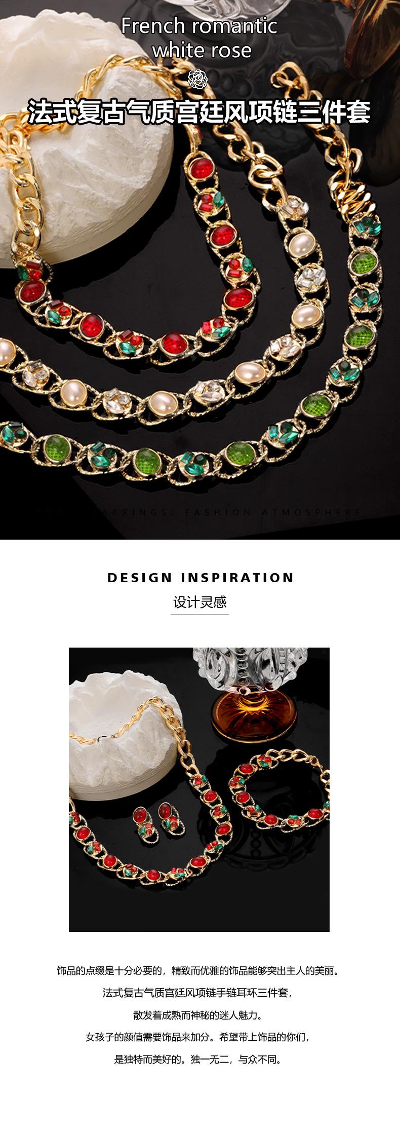 Conjunto de tres piezas de joyería vintage de la época medieval, de lujo, ligero, de alta gama, con collar, pulsera y pendientes de perlas y diamantes.