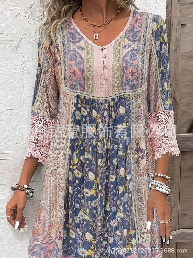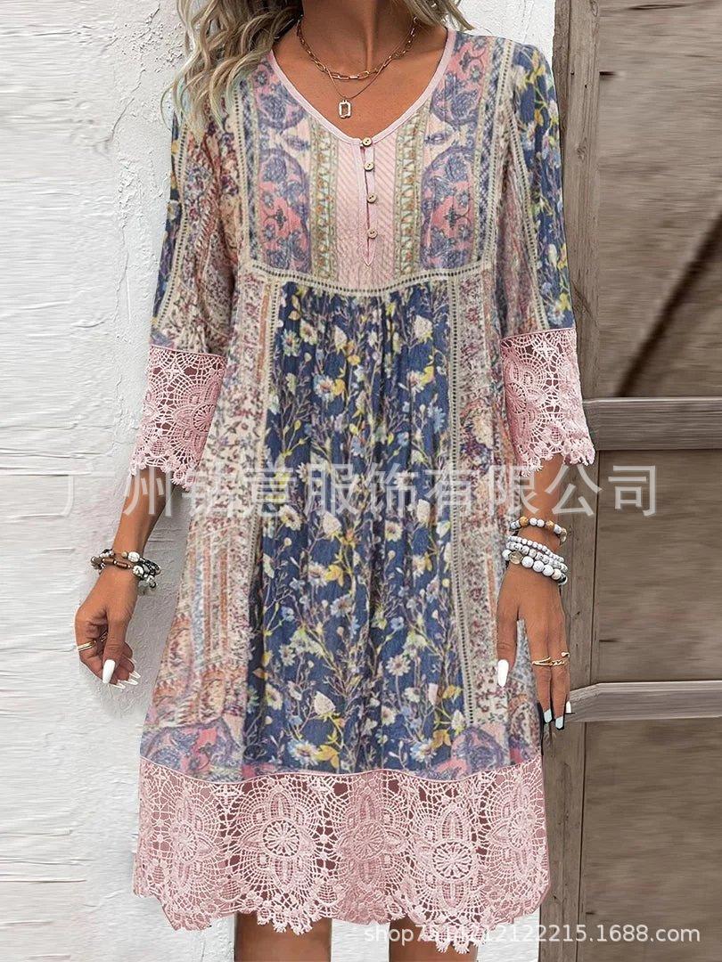 2025 Nuevo Punto Todos los Colores y Tallas Ropa Transfronteriza Europea y Americana Popular Vestido de Encaje con Manga Tres Cuartos