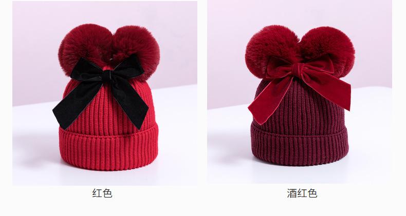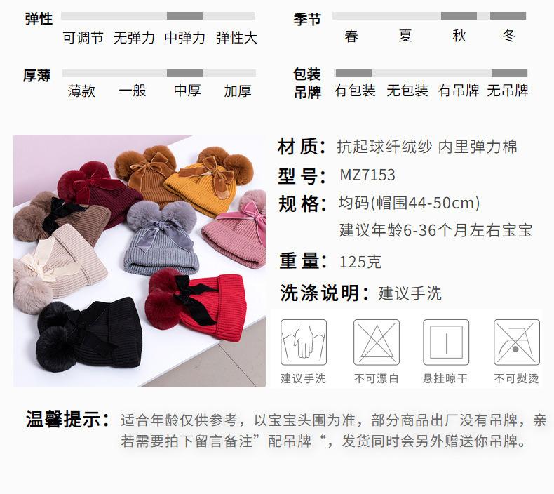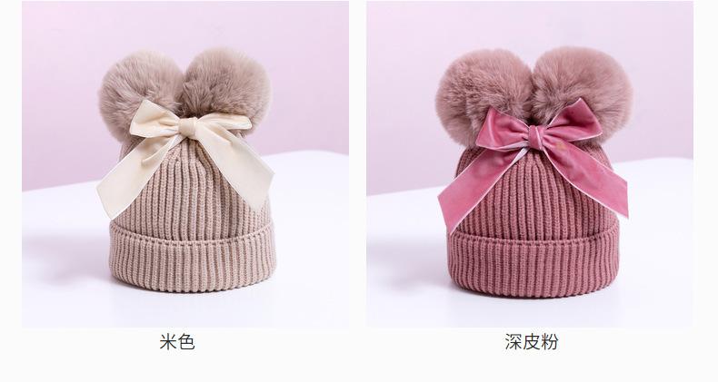 Sombrero de Bebé con Lazo de Doble Pompones Optimización Transfronteriza Sombrero de Lana para Niños Sombrero de Bebé Grueso para Otoño e Invierno Sombrero de Punto para Niños