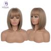 Peluca de cabeza ondulada opcional multicolor, cubierta de cabeza completa con flequillo, cabello bob corto castaño de fibra química, cabello de seda de alta temperatura