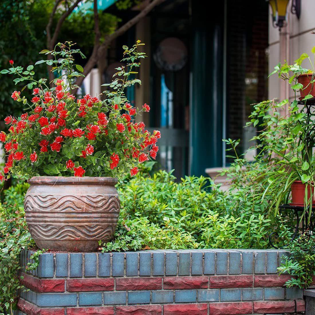 Planta verde artificial de eucalipto y camelia, venta al por mayor de fábrica, arreglo floral con surcos para flores al aire libre, flores decorativas de plástico, simulación de planta verde.