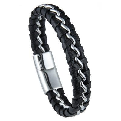 Pulsera de cordón de cuero de acero inoxidable que se puede personalizar.