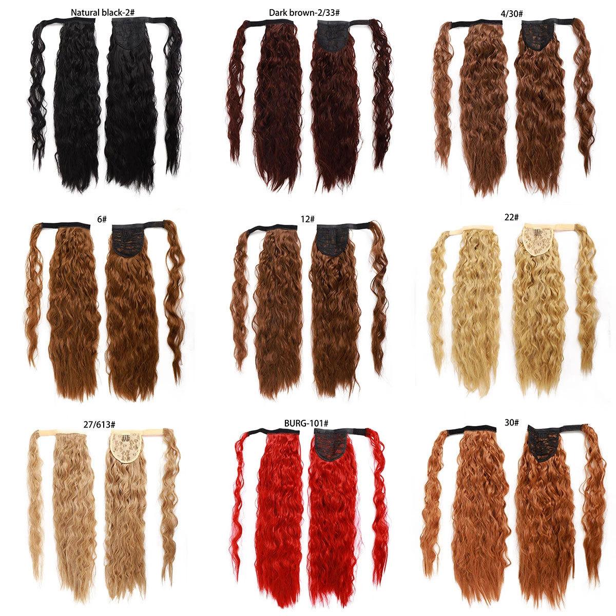 Peluca de moda europea y americana para mujer, cola de caballo esponjosa con gancho y bucle, permanente de maíz, cola de caballo falsa, cabello largo y rizado, peluca de cola de caballo alta