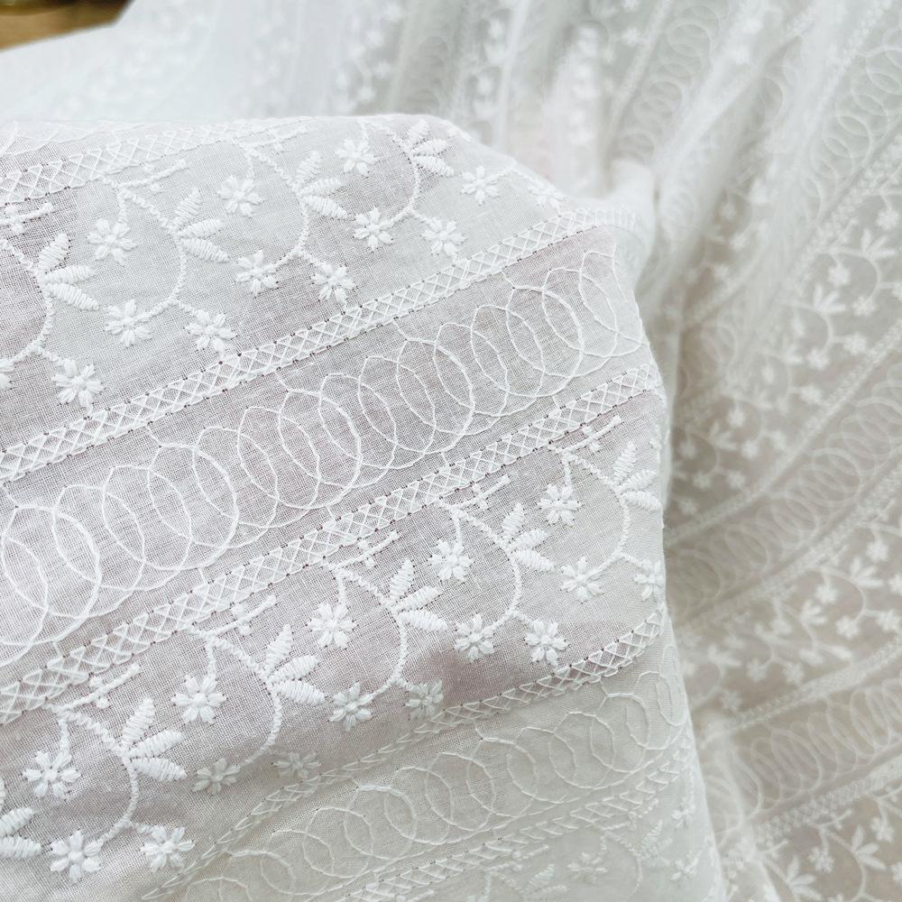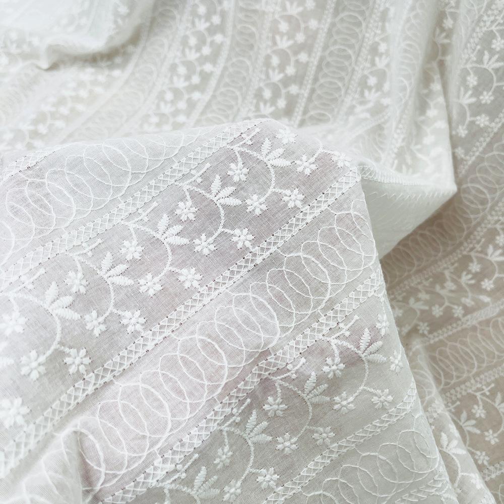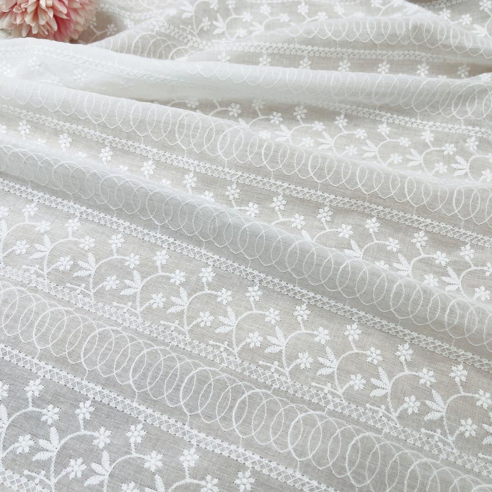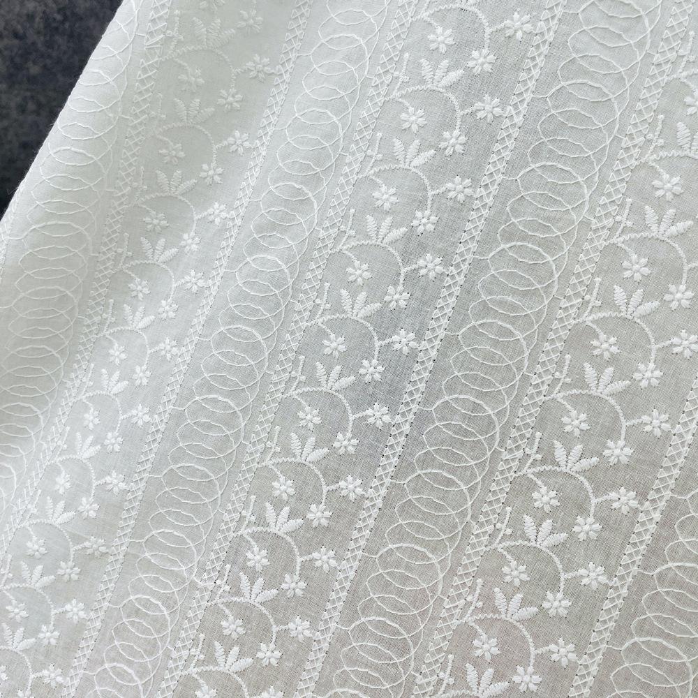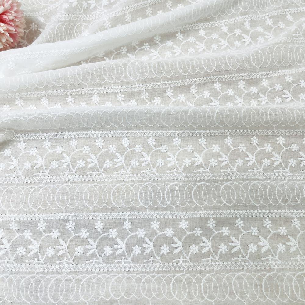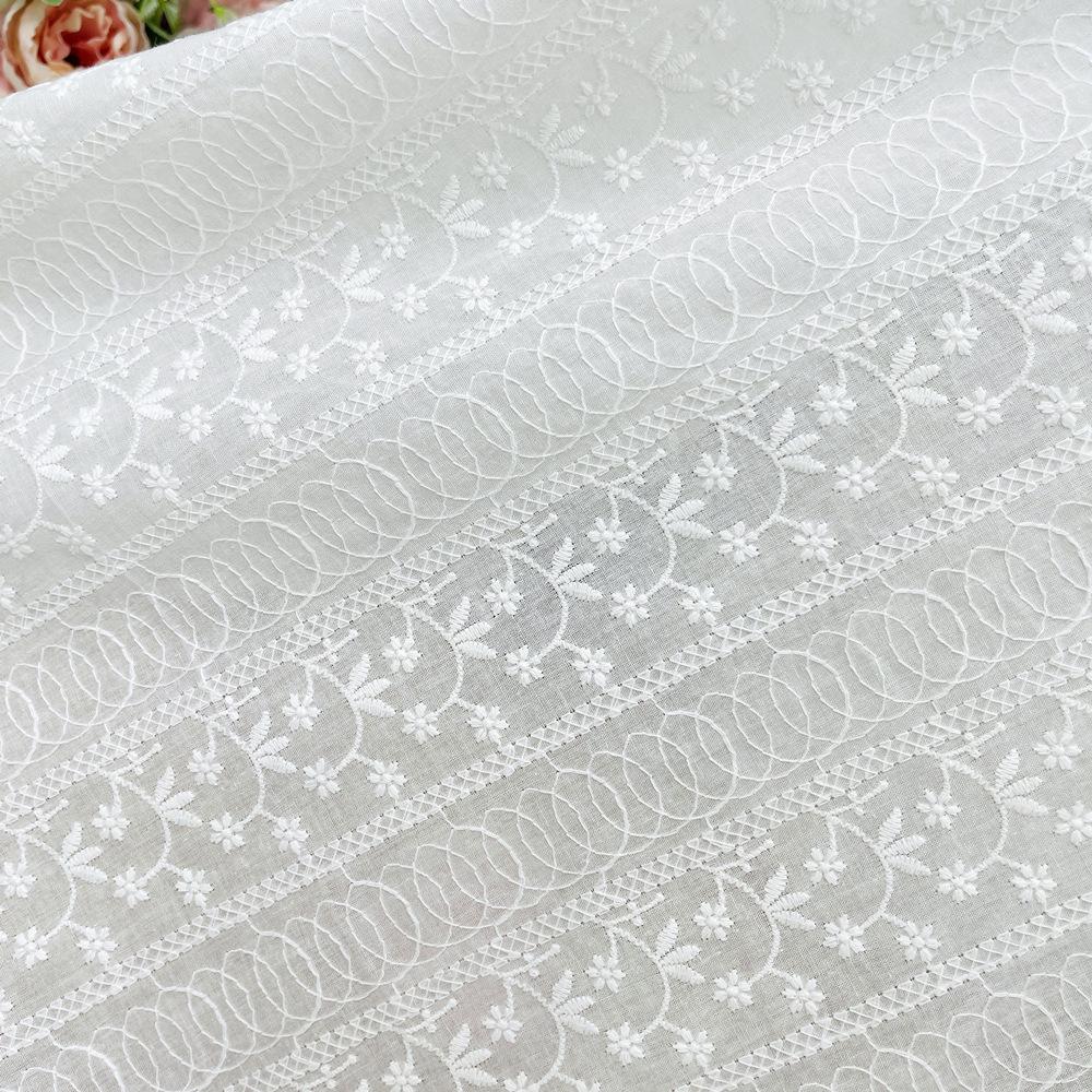 Tela bordada de algodón hueco, tela bordada de algodón Lolita con borde ondulado de diamante para vestido infantil, tela bordada de algodón puro