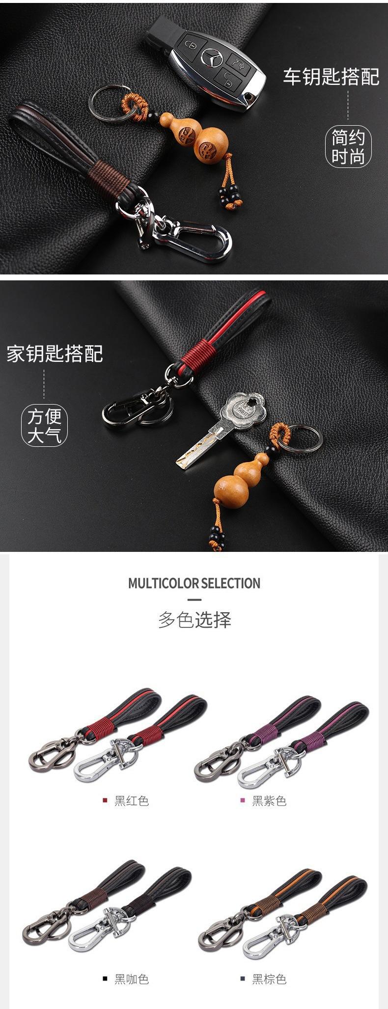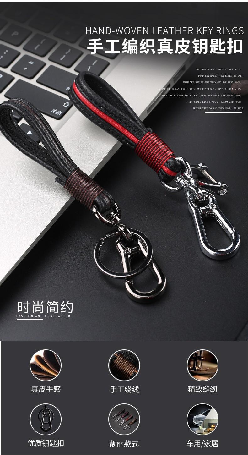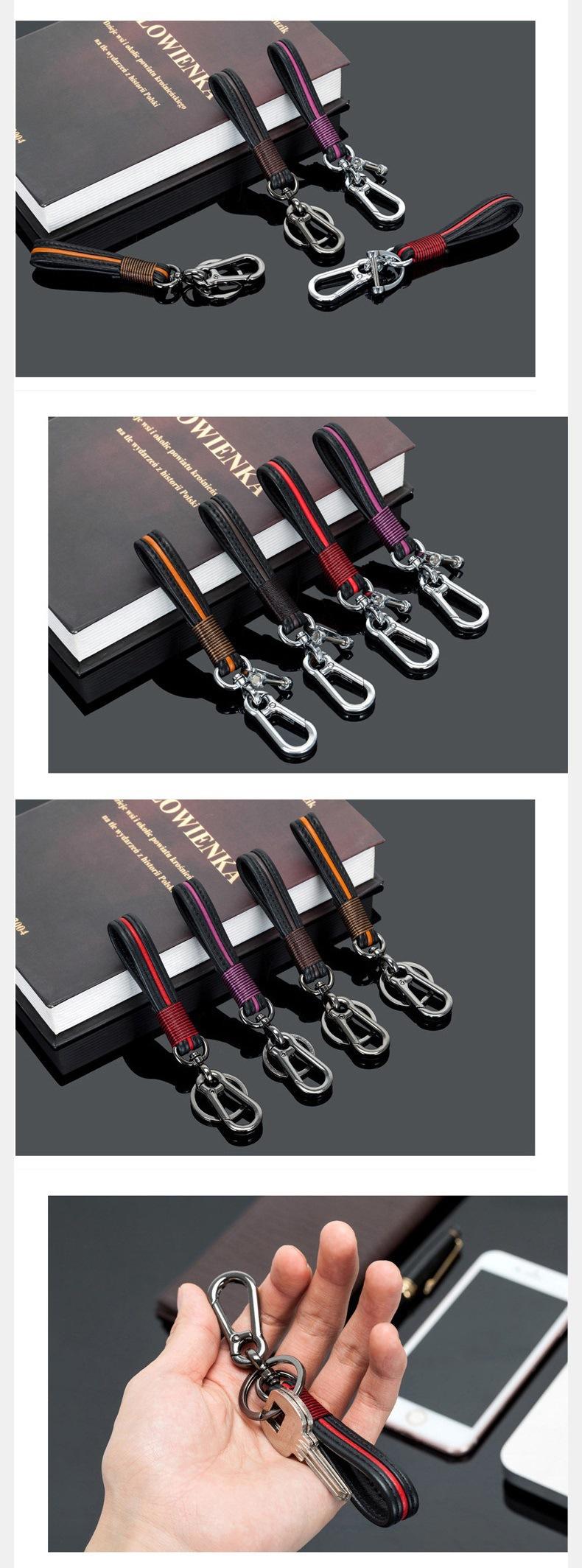 Llavero de cuerda de cuero con colgante de cuerda trenzada, llavero de metal con dibujos animados para pareja, accesorios para hombre y mujer, llavero de coche.