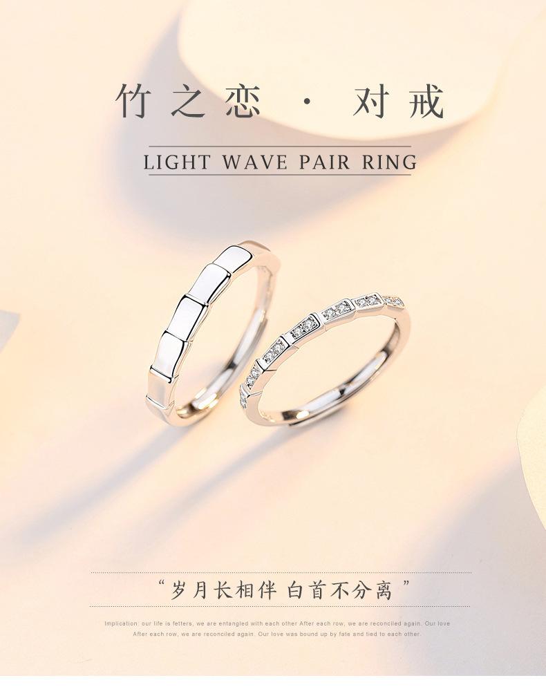 Anillo de Pareja Amor de Bambú Plata Esterlina s925 para Hombres y Mujeres Un Par de Anillos Tanabata de Lujo Ligero Estilo Coreano Simple para la Vida Regalo