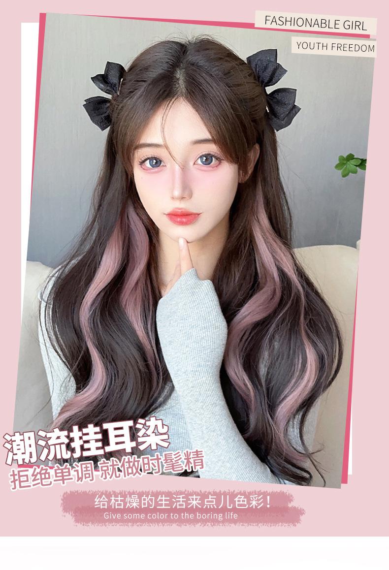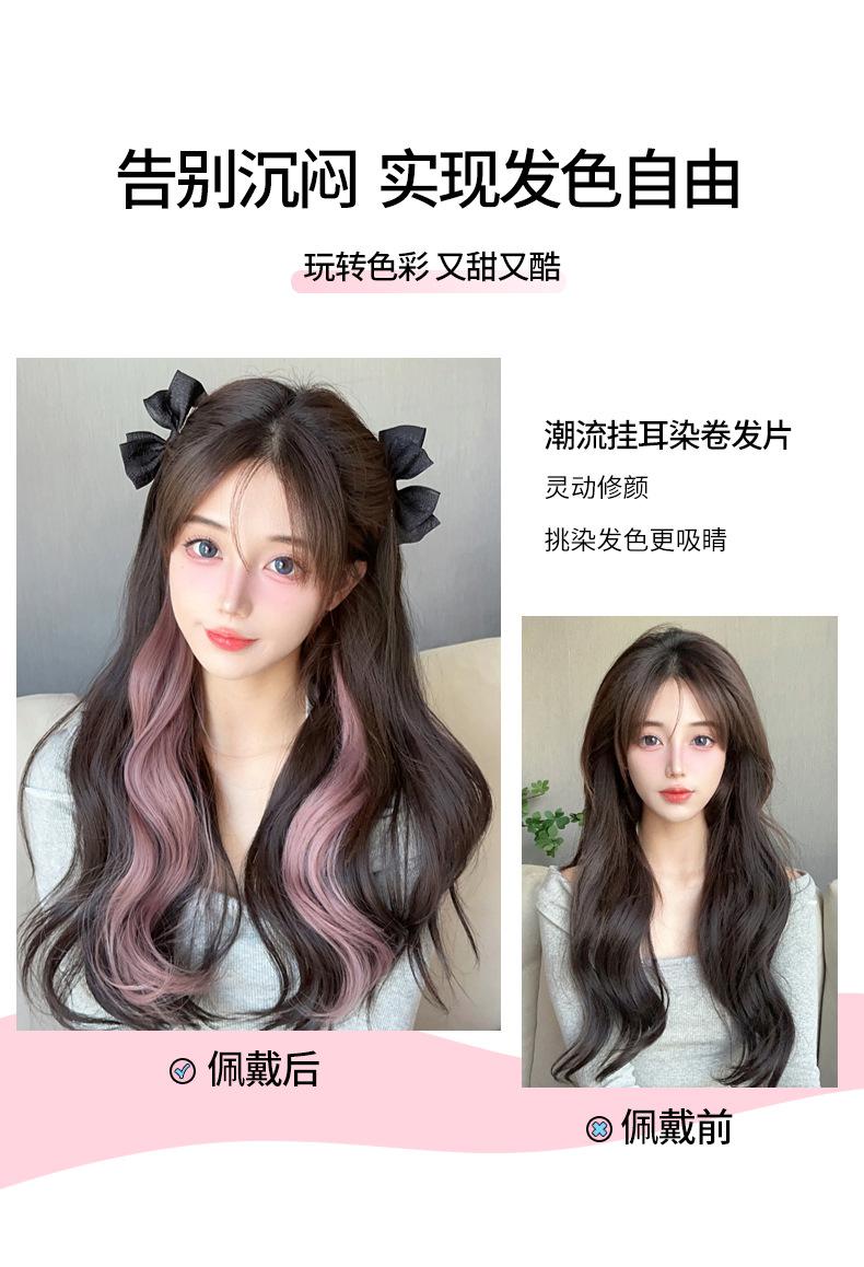 Color colgante de oreja pieza de peluca teñida teñida tira de peluca rizada peluca artificial invisible cabello largo femenino tira de extensión de cabello de una pieza