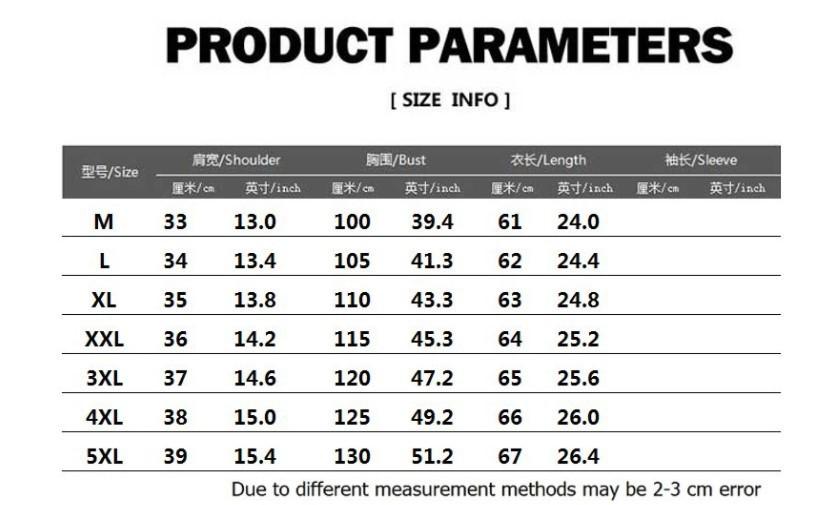 S, M, L, XL, XXL, XXXL, 4XL, 5XL