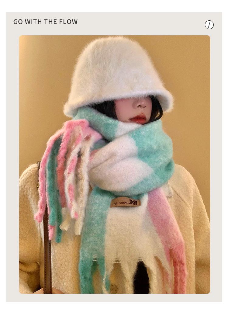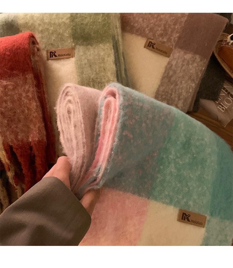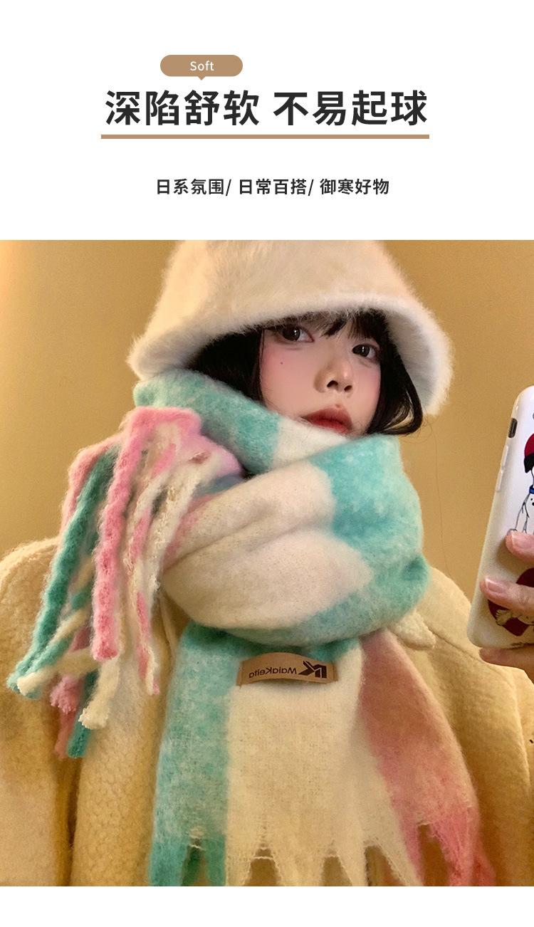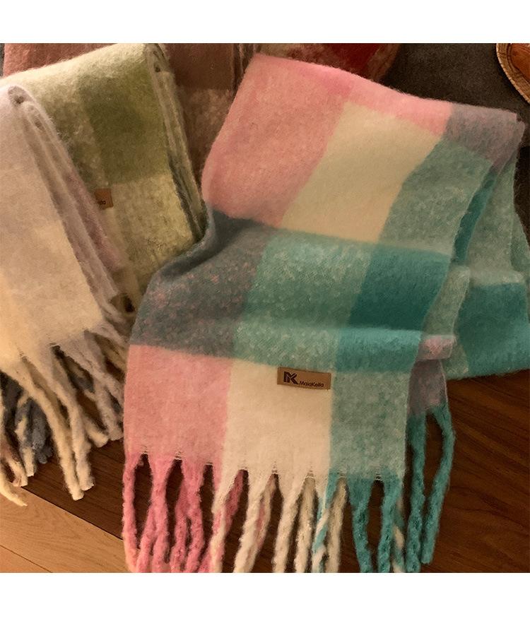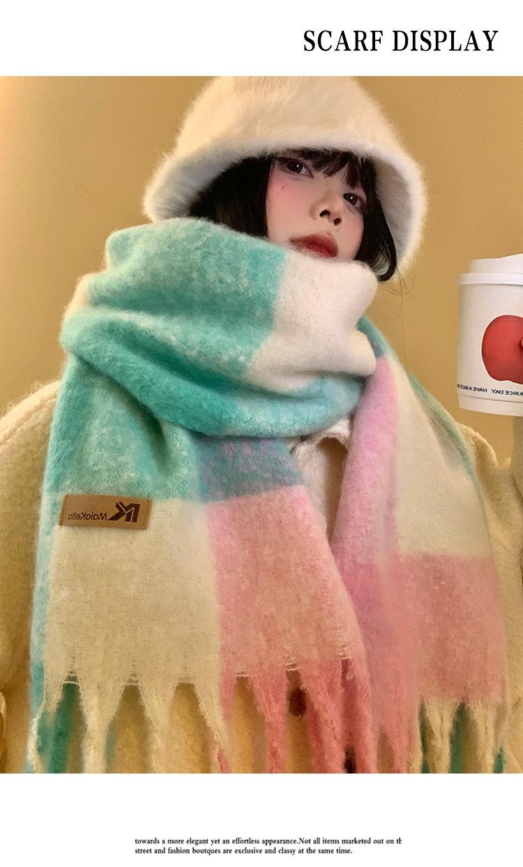 Compra Bufanda a cuadros de color nuevo 2024 para mujer, otoño e invierno, gruesa, cálida, con protección para el cuello, bufanda de dopamina para estudiantes al por mayor en Joom.pro