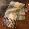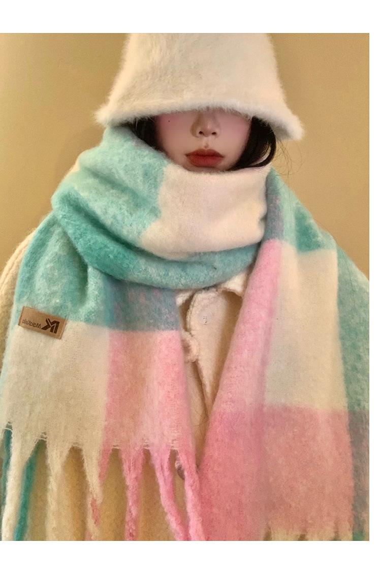 Bufanda a cuadros de color nuevo 2024 para mujer, otoño e invierno, gruesa, cálida, con protección para el cuello, bufanda de dopamina para estudiantes