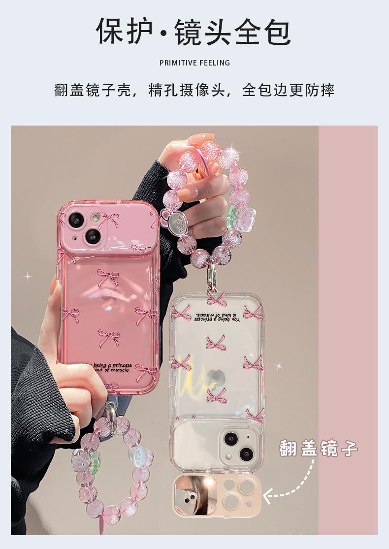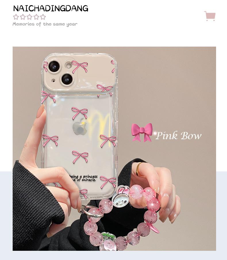 Adecuado para Apple 16Promax Funda Transparente para Teléfono Móvil Iphone14 Lazo Rosa 15 Todo Incluido 13 Silicona 1211
